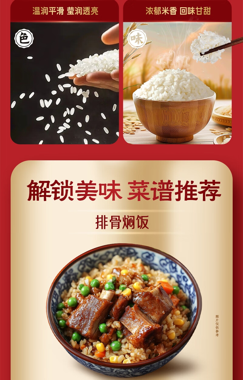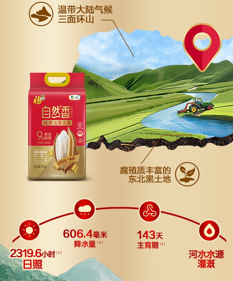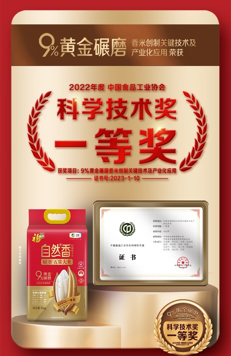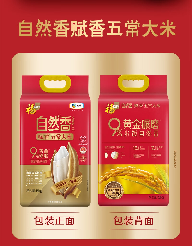 自然香系列采用的9%黄金碾磨技术;选用五常新优质品种,米粒细长有嚼劲;是国家地理标志保护产品