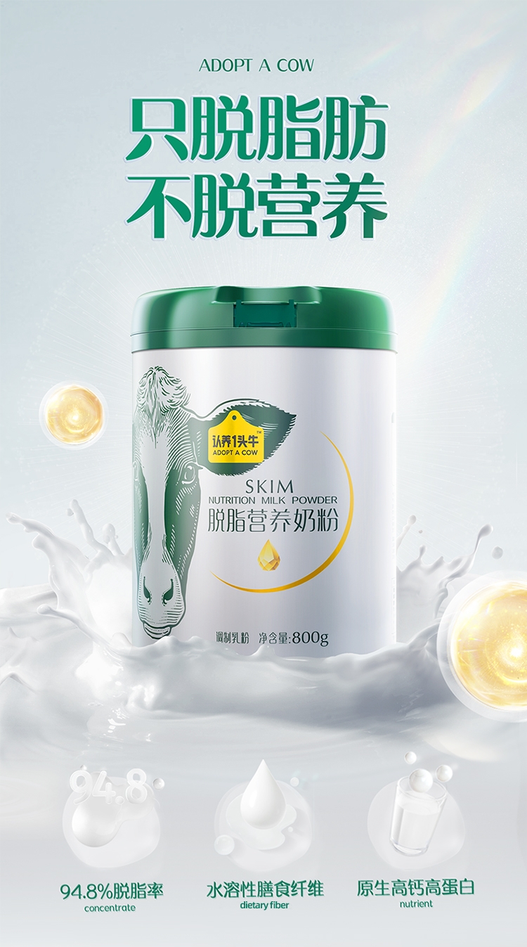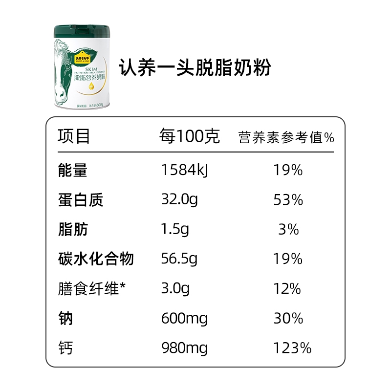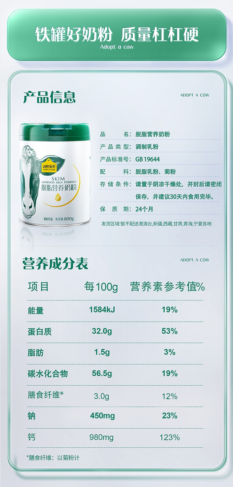 认养1头牛 认养一头牛脱脂营养奶粉800g