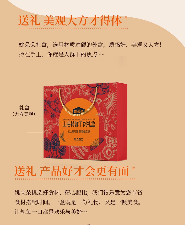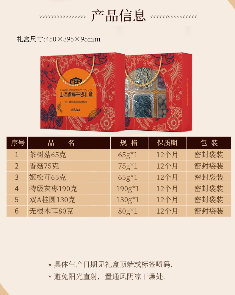 臻选菌菇干货滋补组合,营养丰富,健康之选;精美包装,礼赠亲朋、自留享用皆可。;所有食材源自优质产地,层层质检把关,品质更有保障