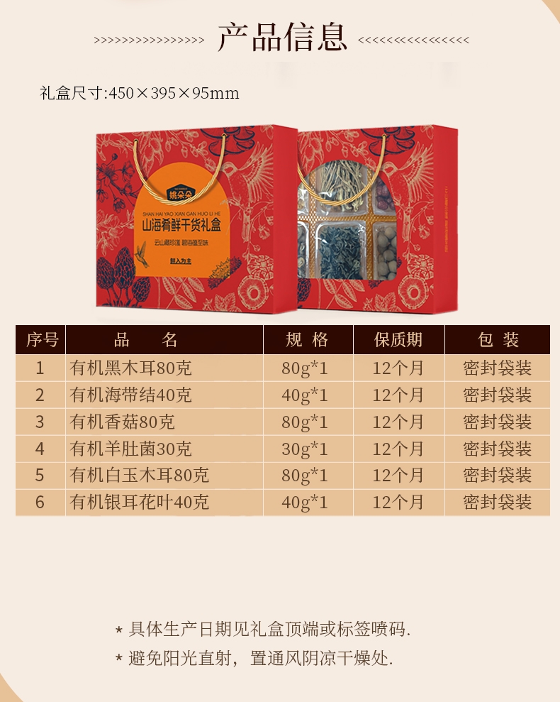 有机臻选菌菇干货滋补组合,营养丰富,健康之选;精美包装,礼赠亲朋、自留享用皆可。;所有食材源自优质产地,层层质检把关,品质更有保障