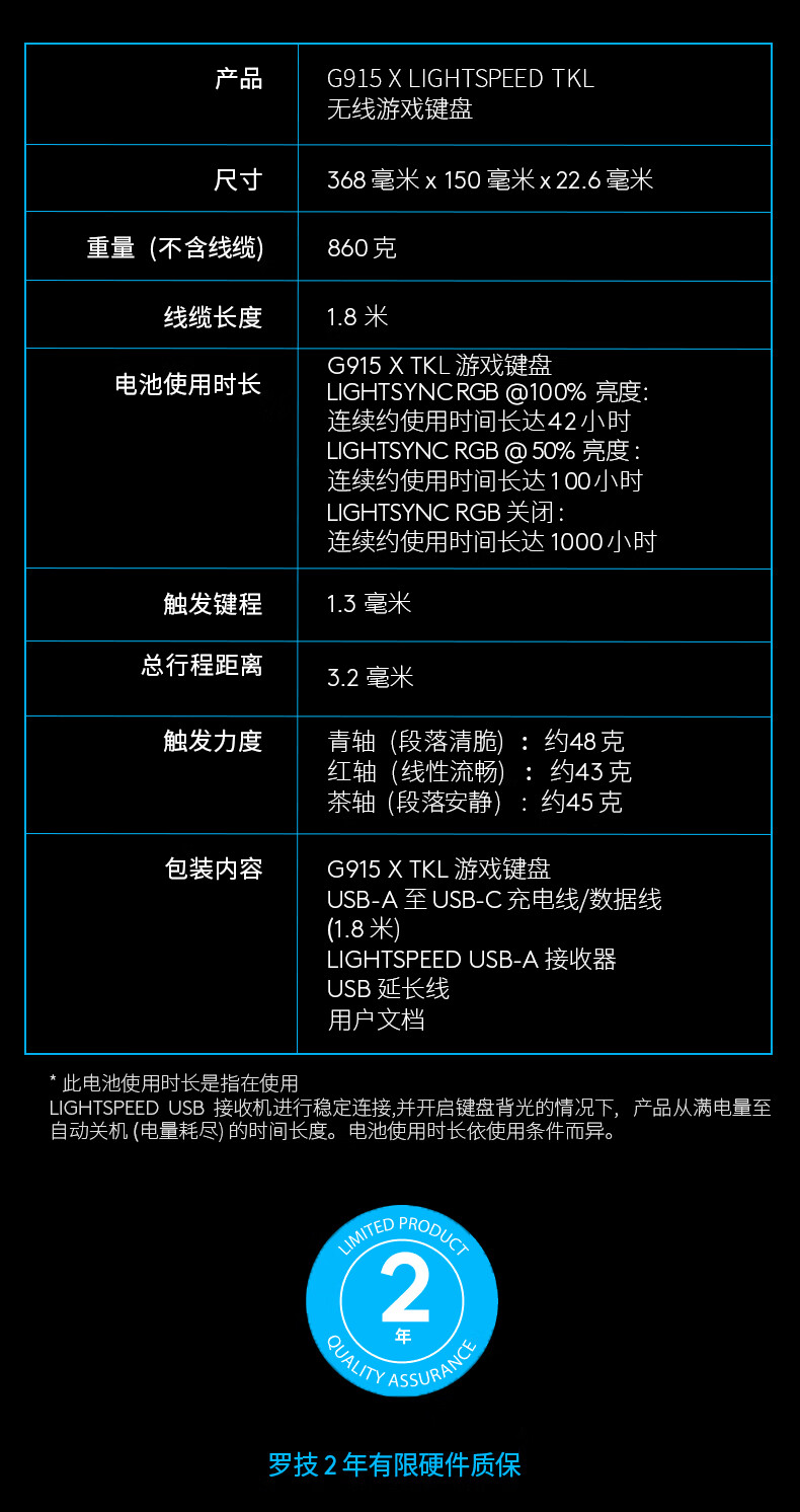 罗技 矮轴无线游戏键盘G915TKL