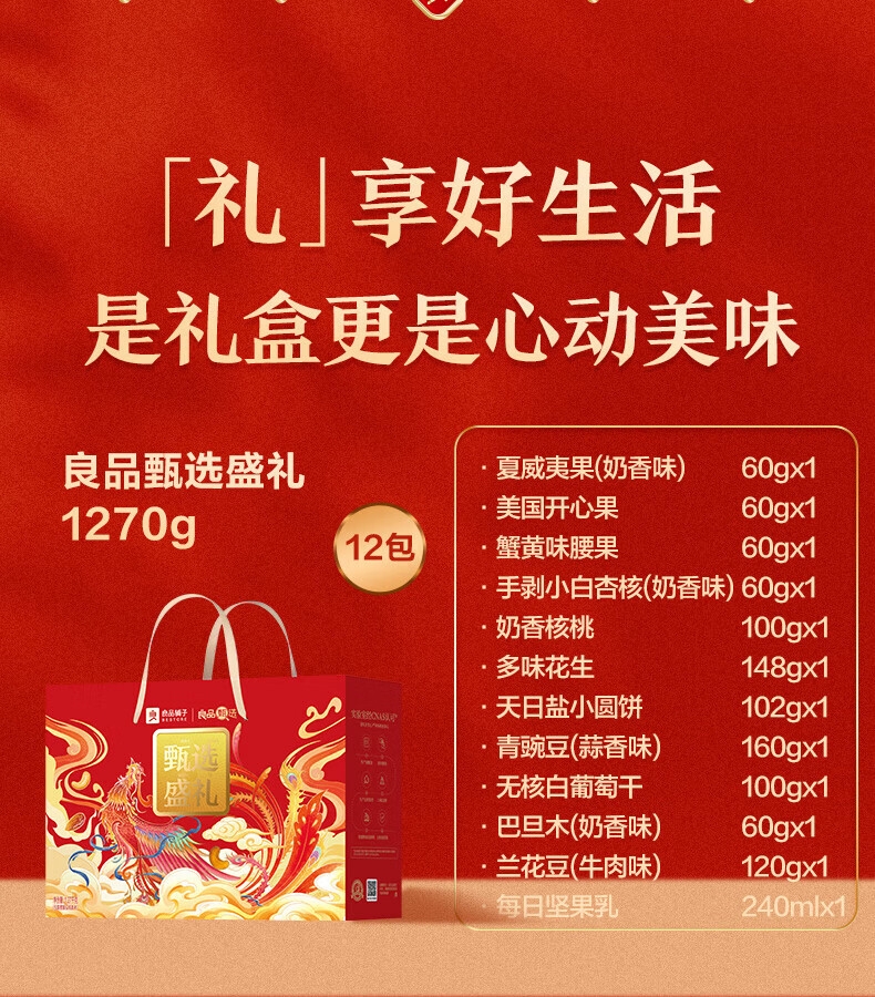 良品铺子 甄选盛礼坚果零食礼盒1270g