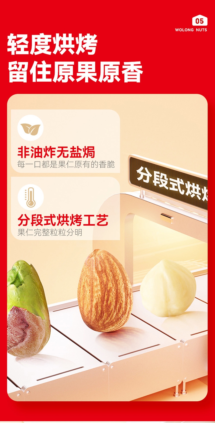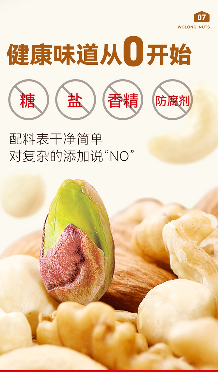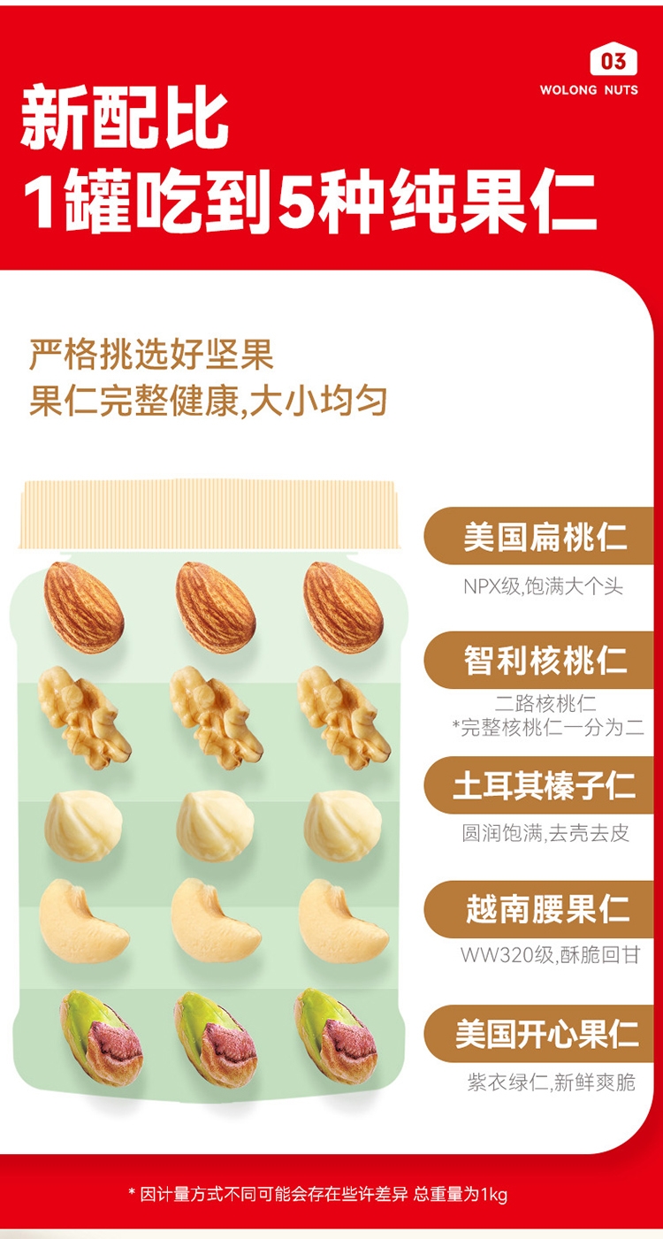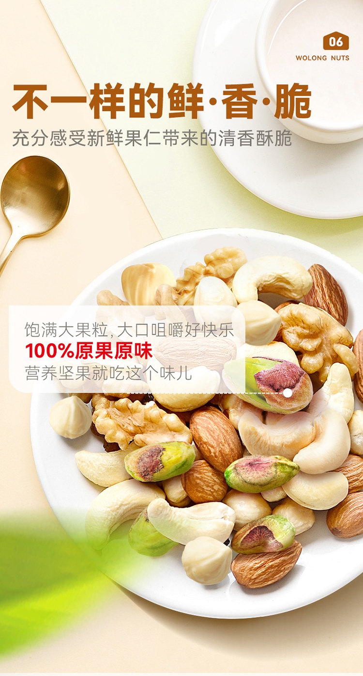 配置清单:扁桃仁、核桃仁、腰果、开心果仁、榛子仁、夏威夷果仁