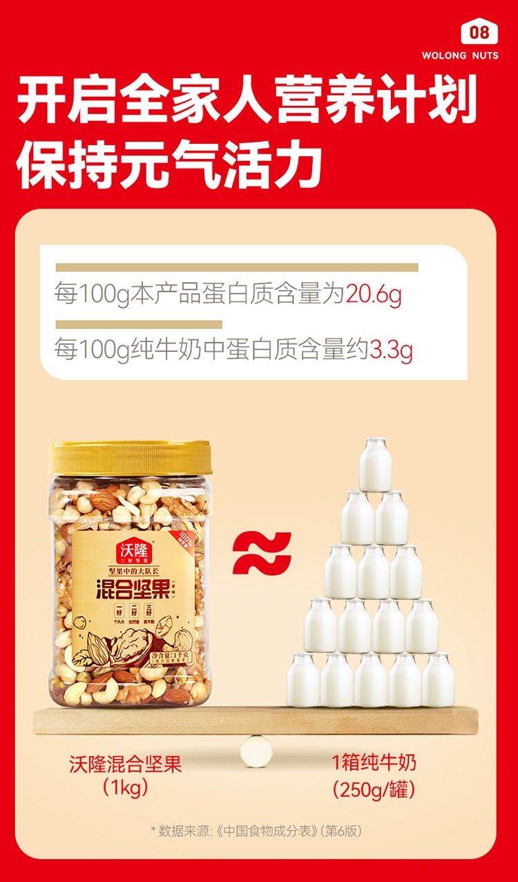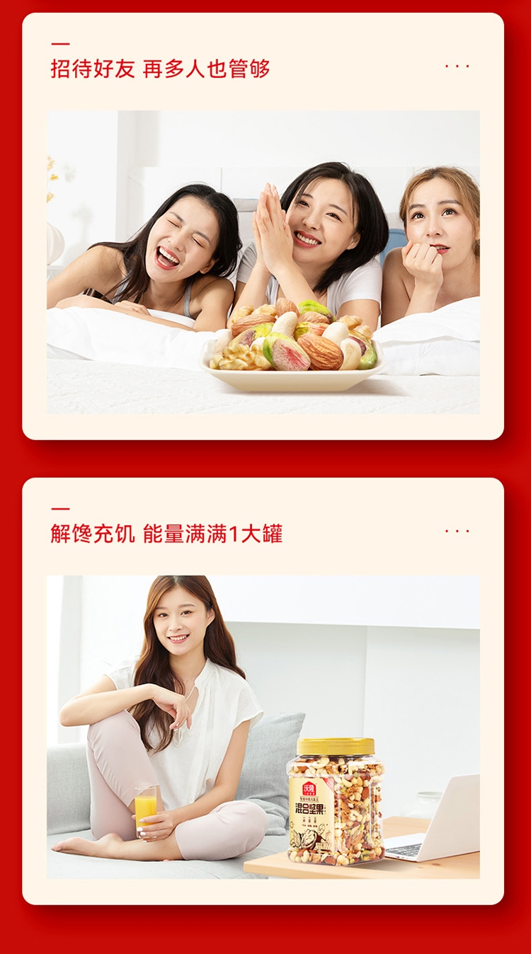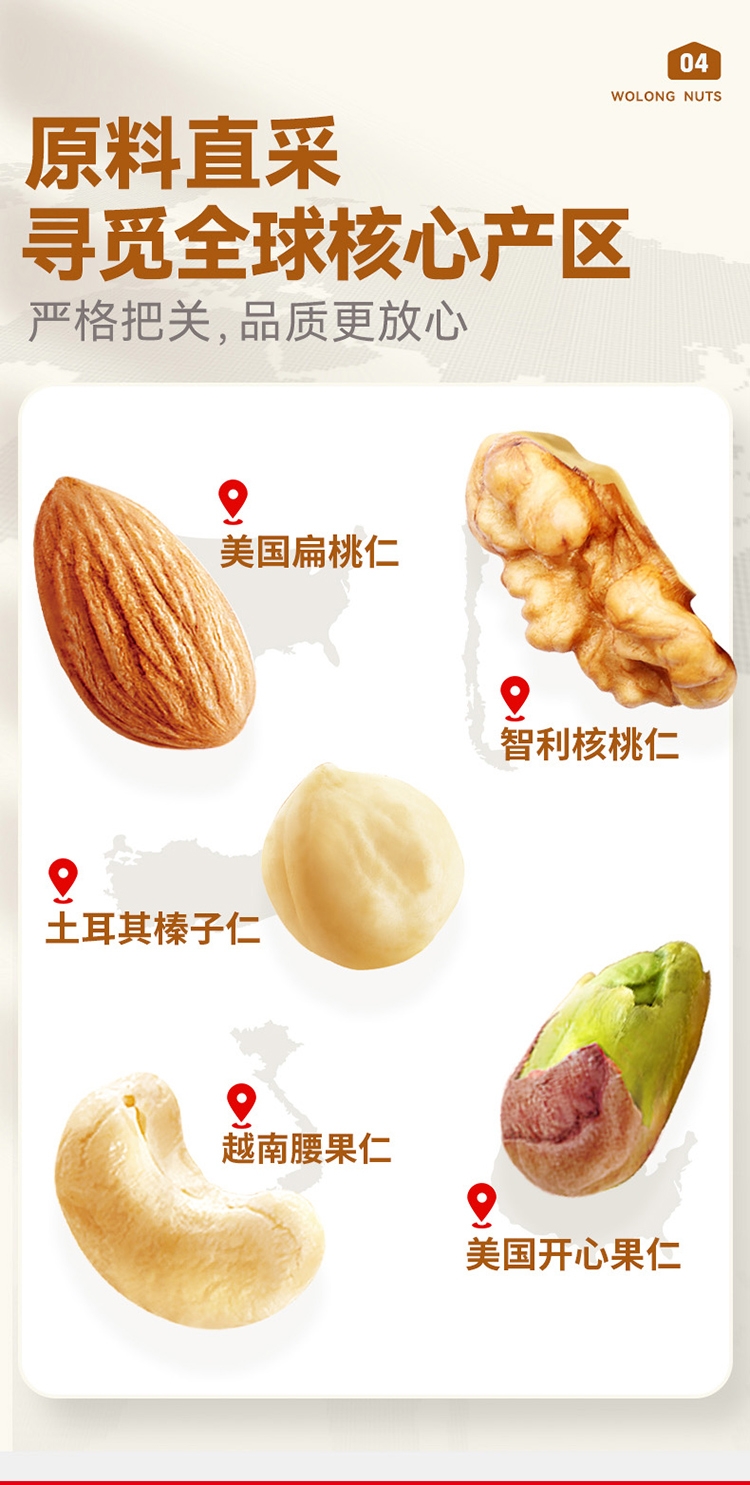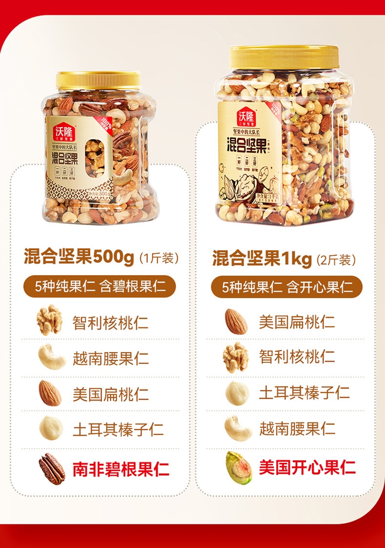 配置清单:扁桃仁、核桃仁、腰果、开心果仁、榛子仁、夏威夷果仁