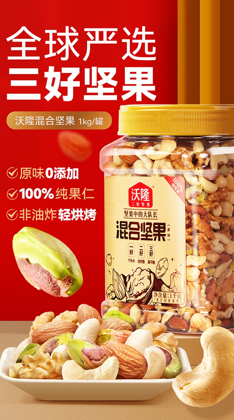 沃隆 混合坚果原味量贩特大1kg