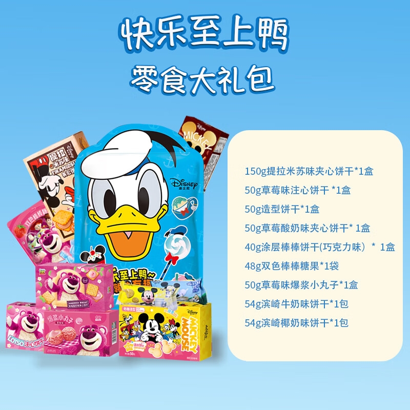 配置:150g提拉米苏味夹心饼干 50g草莓味注心饼干 50g造型饼干BSD-M 50g草莓酸奶味夹心饼干 40g涂层棒棒饼干 48g双色棒棒糖果 50g草莓味爆浆小丸子 54g滨崎牛奶味饼干 54g滨崎椰奶味饼干