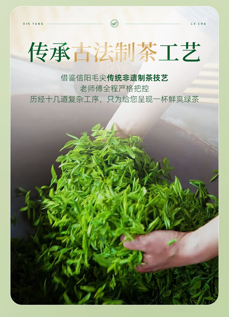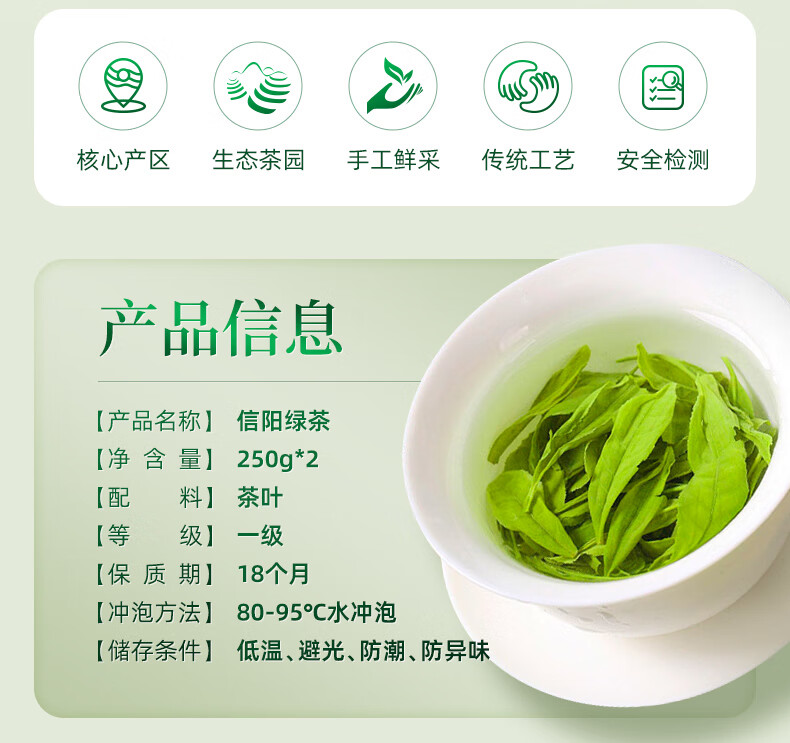 国家地理标志保护产品,非物质文化遗产技艺;干茶条索:紧、细、圆、直,色泽绿润,匀整度良好;香气清香高长,略带熟栗香,滋味醇厚