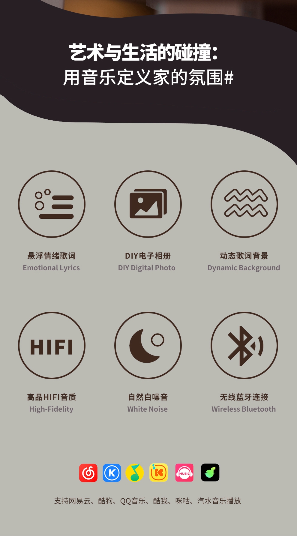 悬浮动态歌词;白噪音+背景图;可替换电子相册
