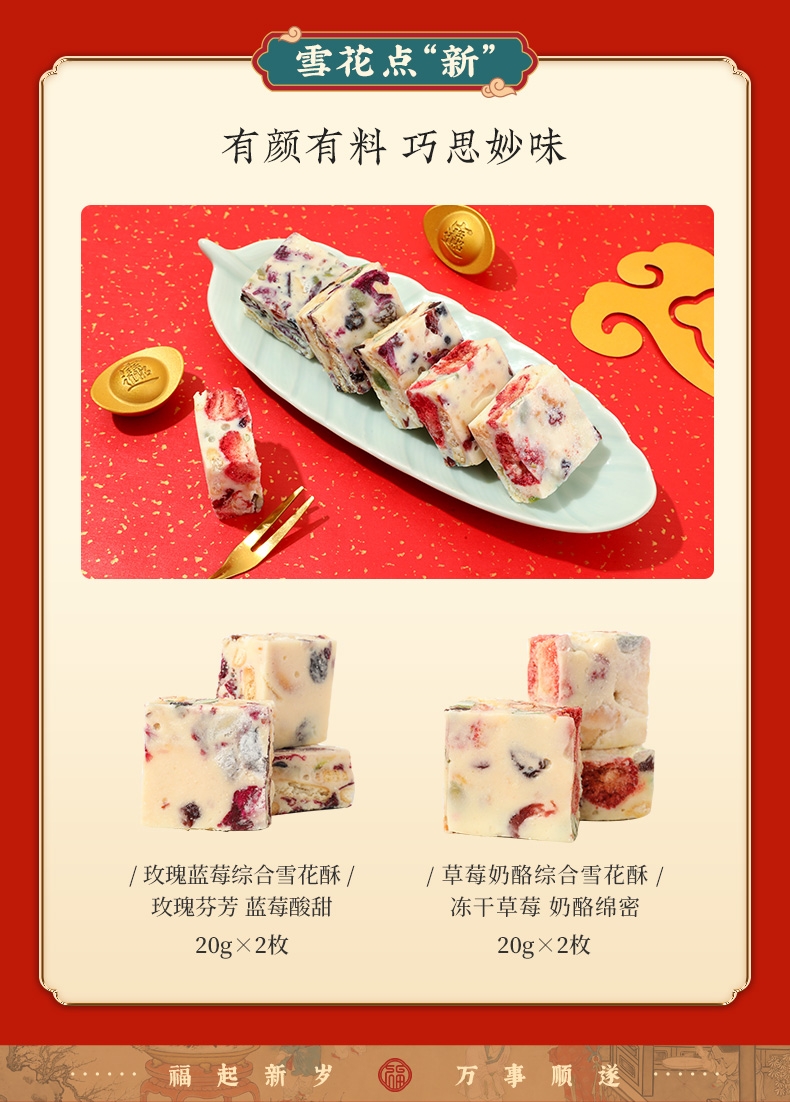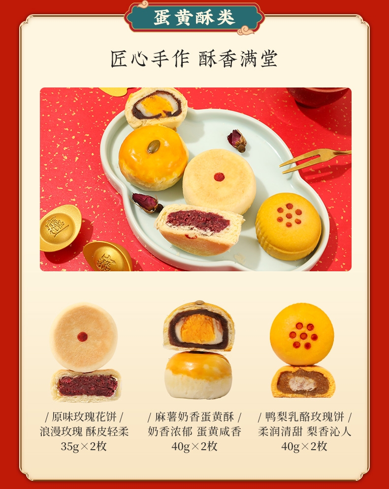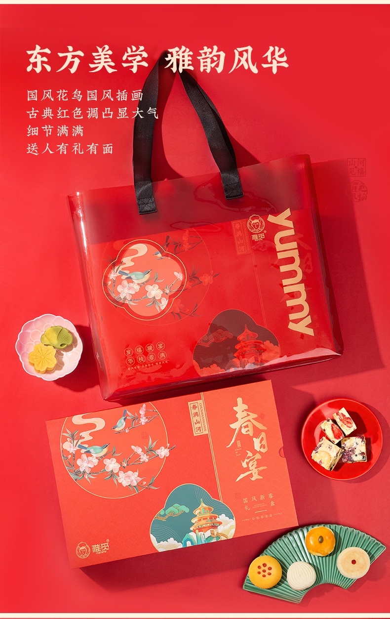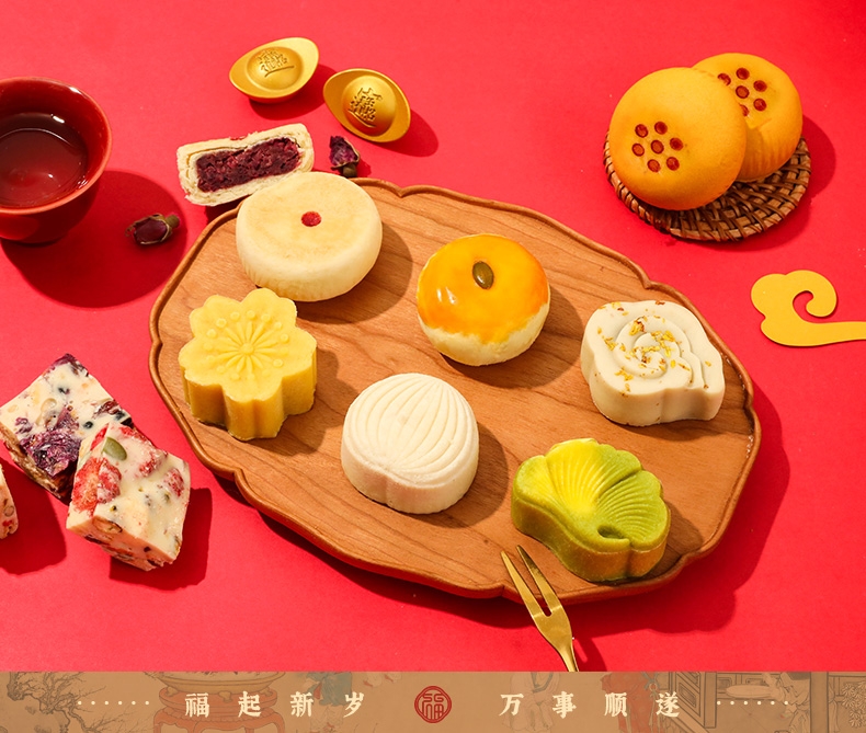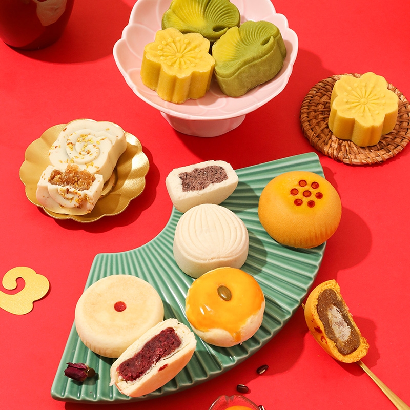 从清润的秋梨米糕到拉丝的麻薯蛋黄酥,一盒集齐花果清;不仅保留了原味绿豆糕、原味玫瑰花饼这样的经典味道,;礼盒内含米糕、绿豆糕、酥饼、雪花酥等多种形态