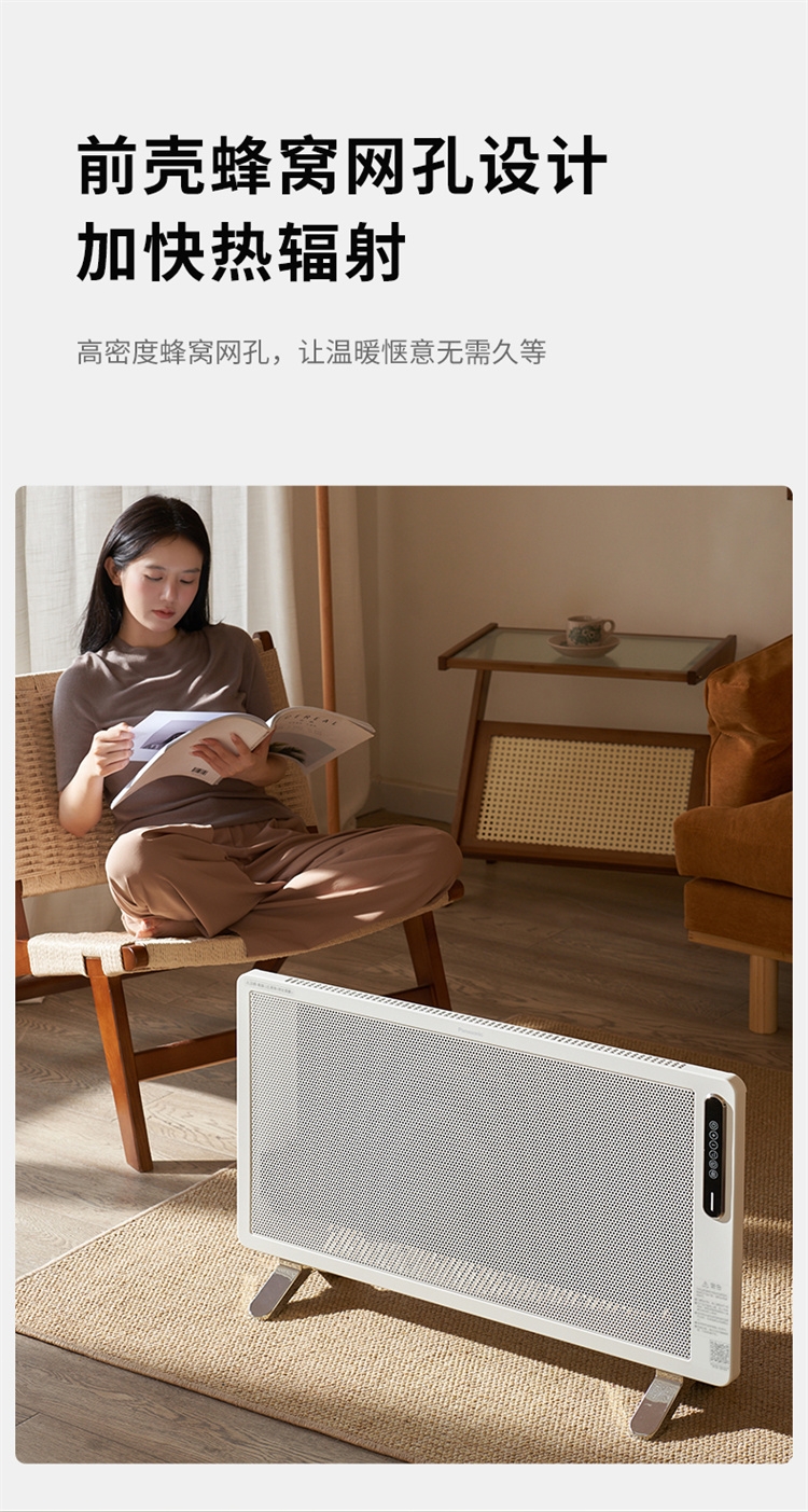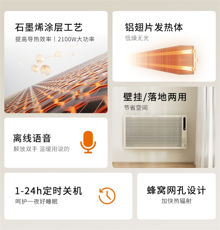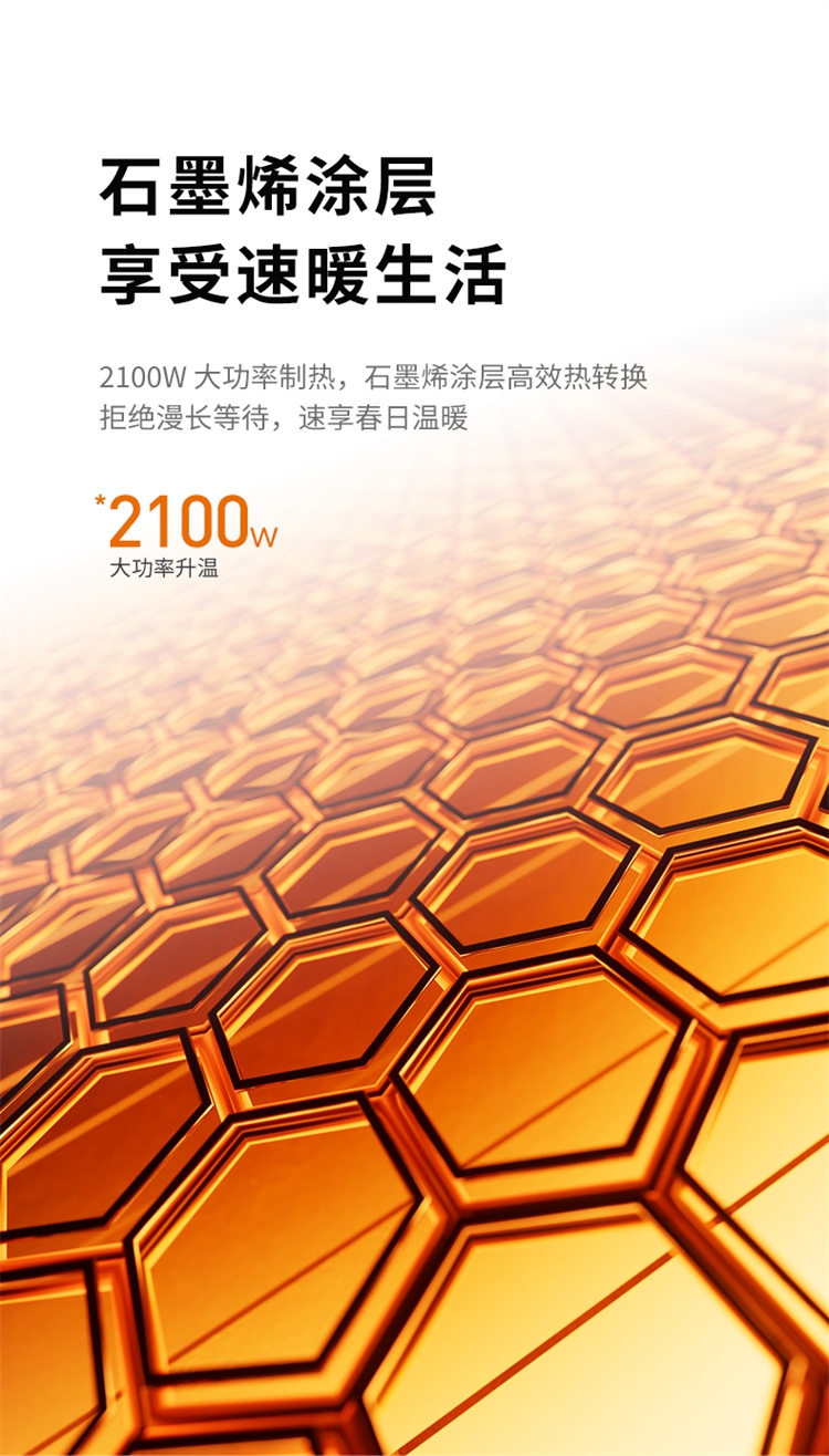 科技石墨烯:导热性优秀的新型材料;远红外线传热:均匀升温不干燥;全新代发热体:石墨烯+铝翅片