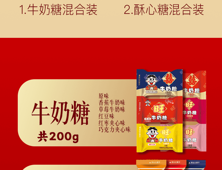 配置:【旺旺】牛奶糖200g 【旺旺】酥心糖318g (酥心糖称重325g)