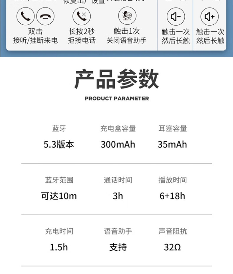 耳机:蓝牙5.3高传输低延迟;