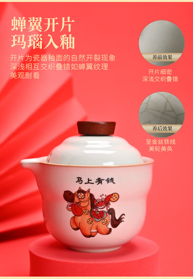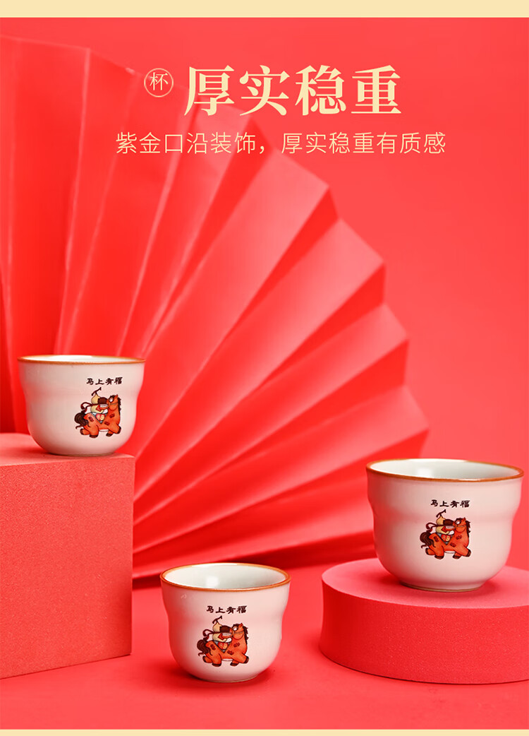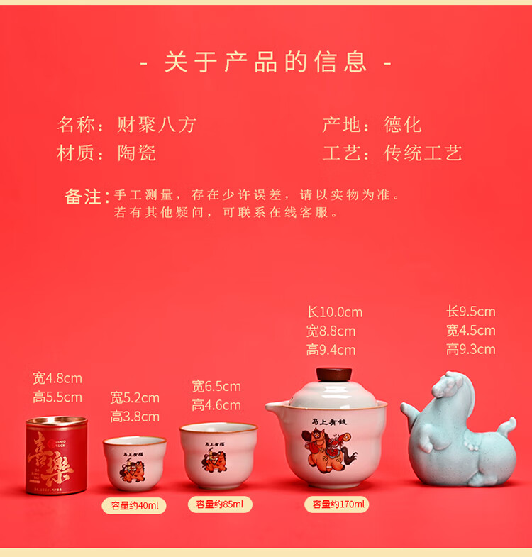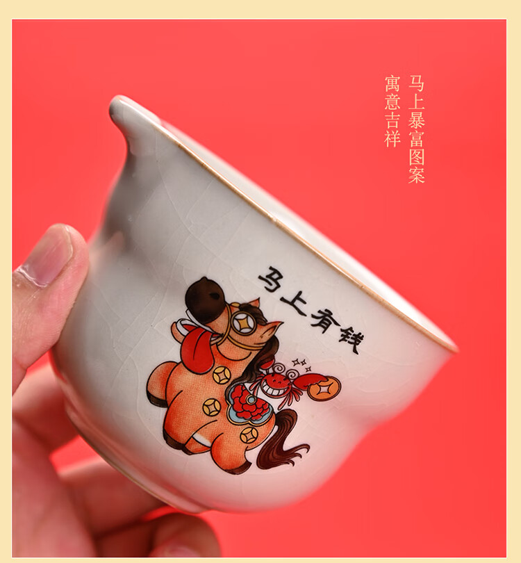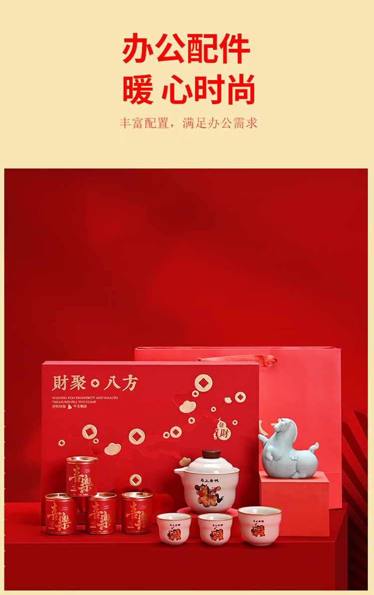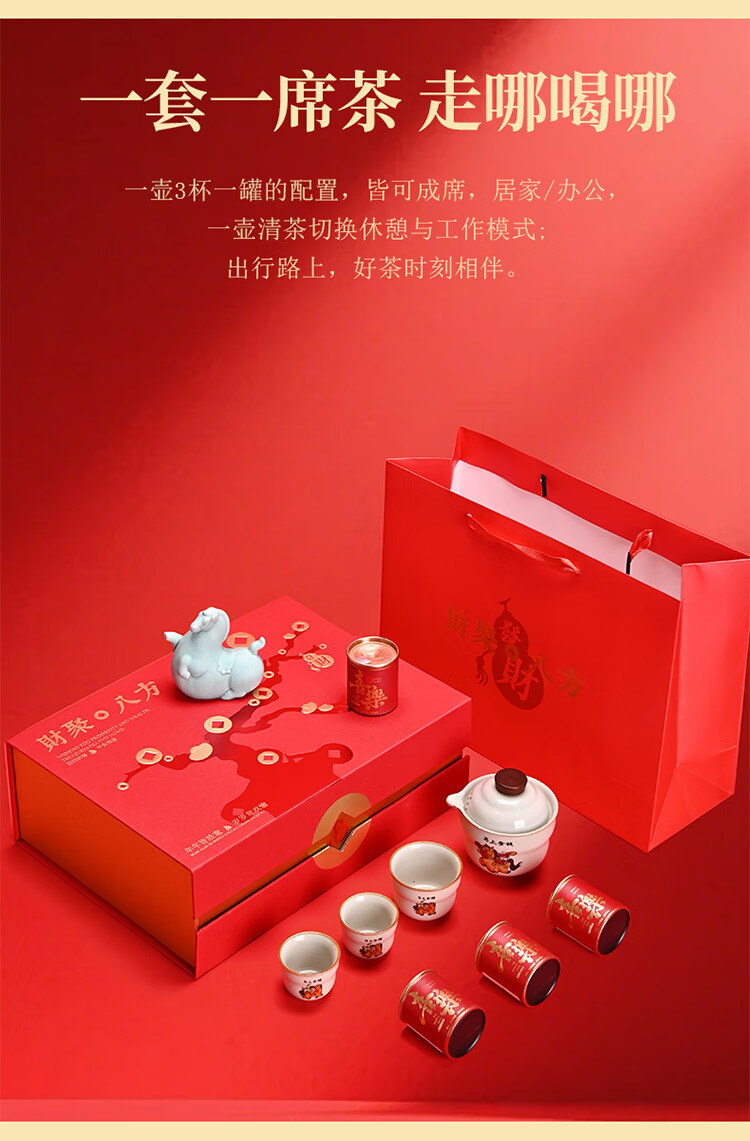 财聚八方,寓意吉祥;天然矿物釉,高温烧制无铅镉;红色礼盒,喜气洋洋