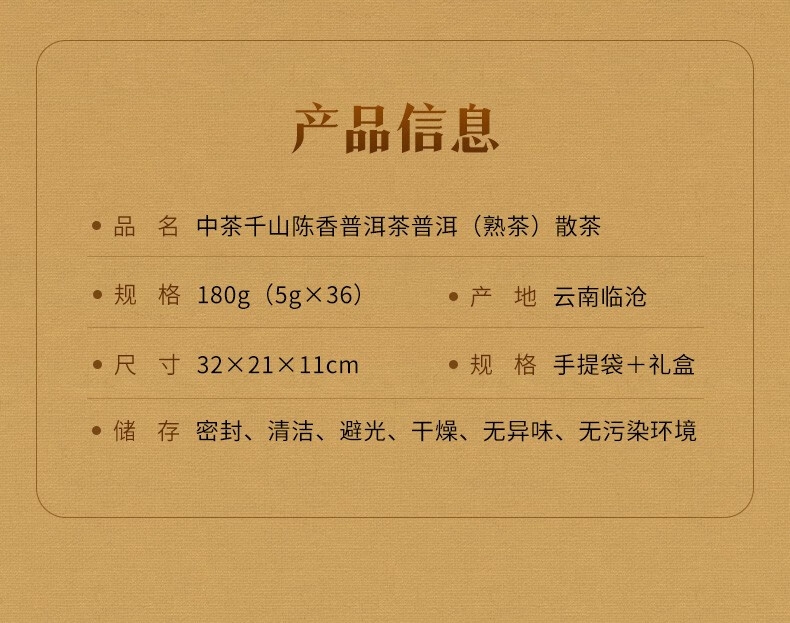 发票名称:*茶*中茶千山·陈香普洱CT22607