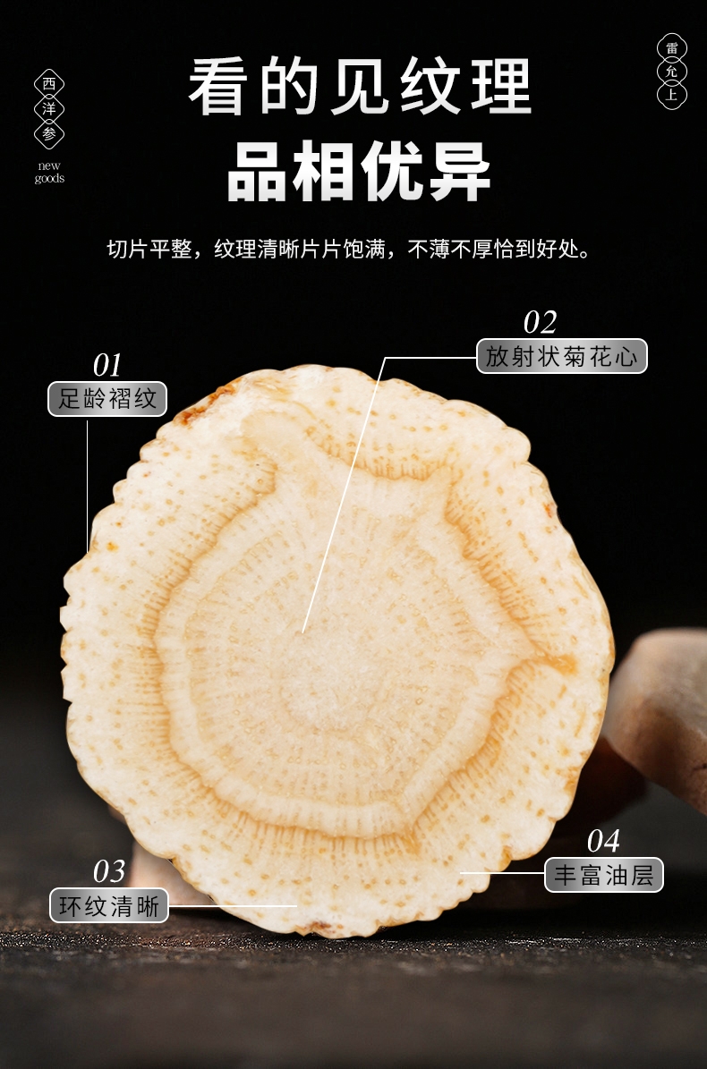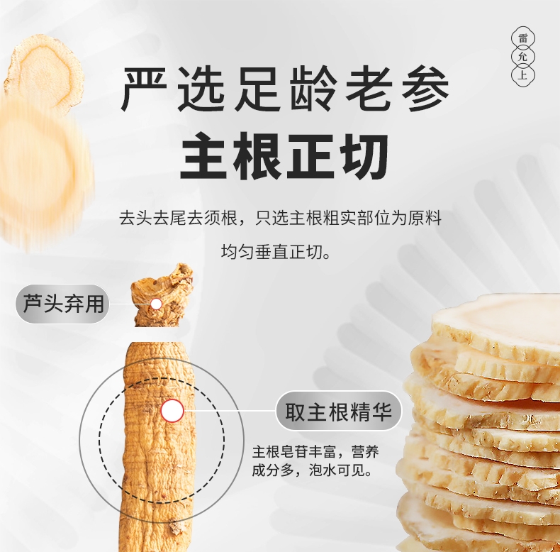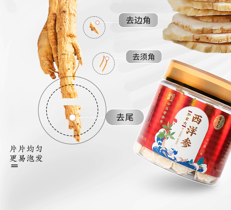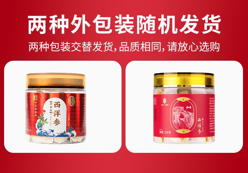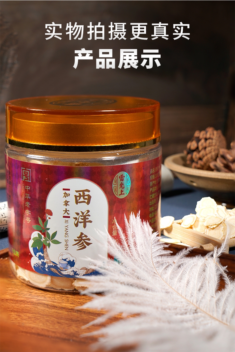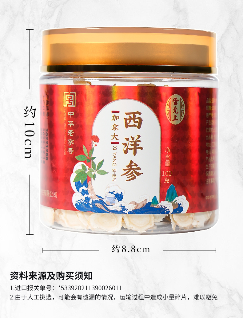 中华老字号品牌,百年企业生产;加拿大进口,造就品质人参;片直径1.2-1.4CM