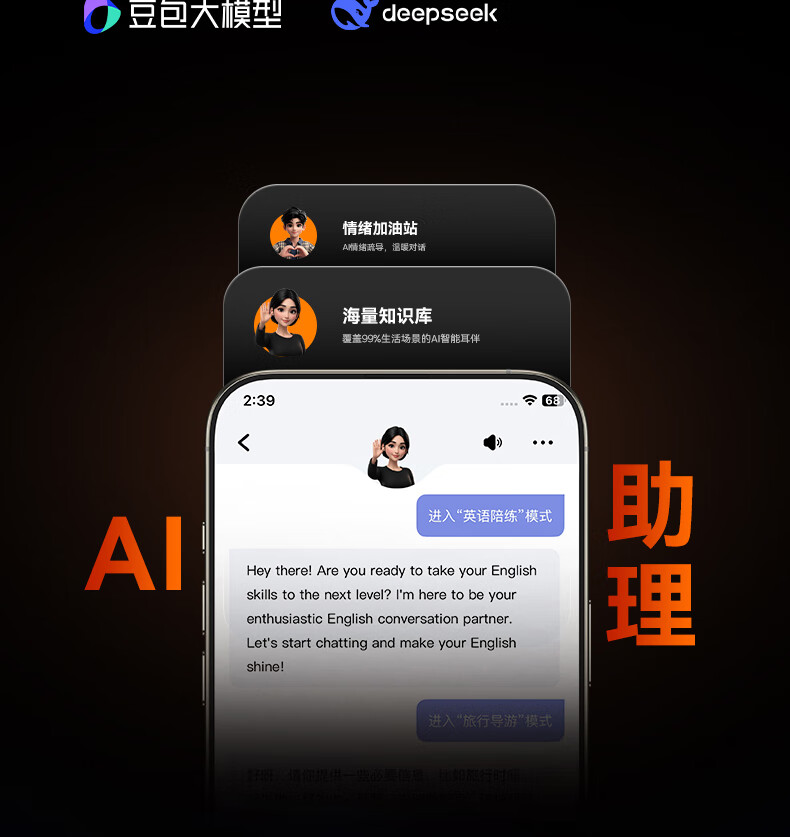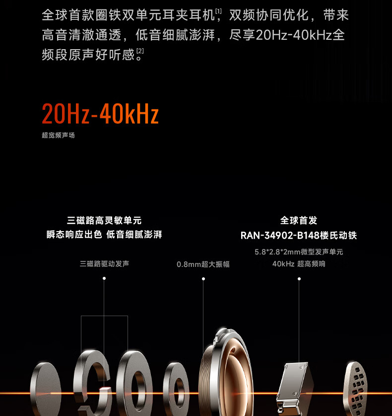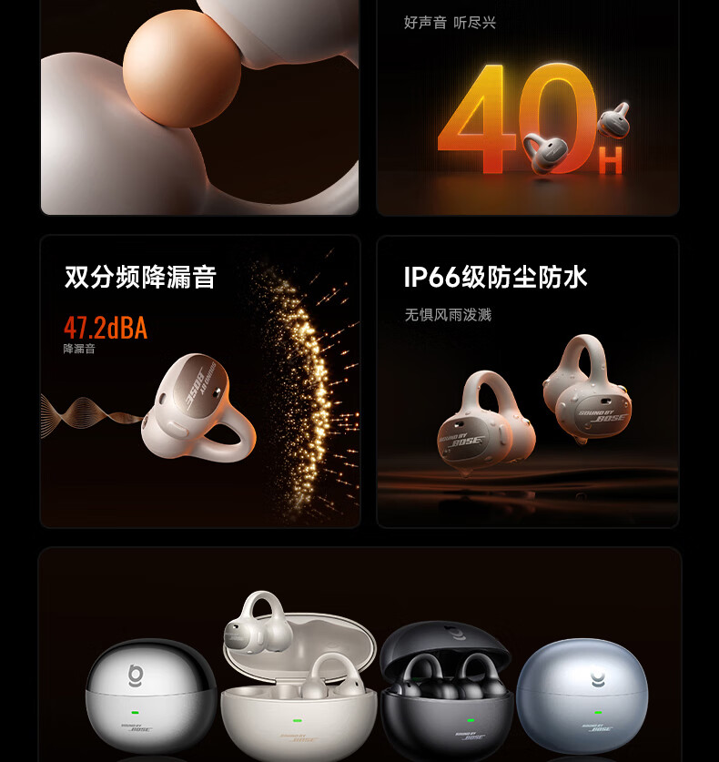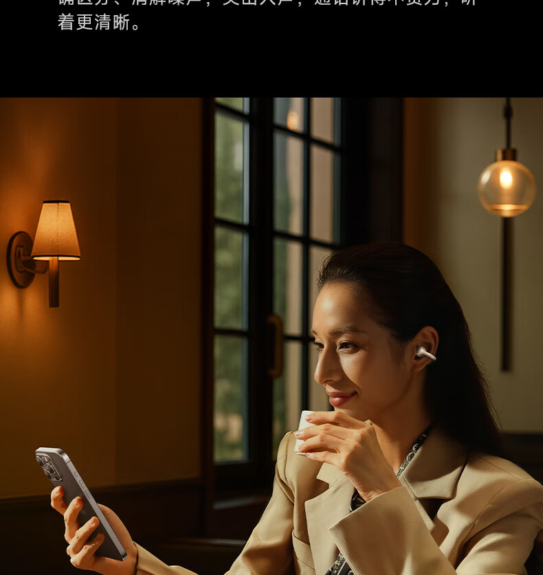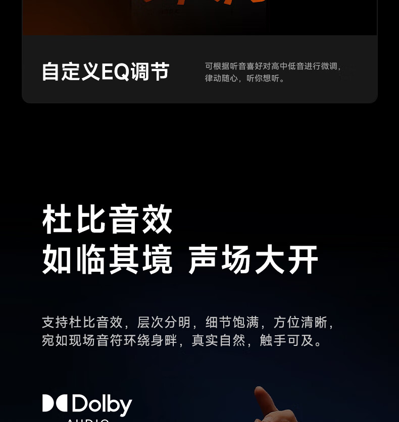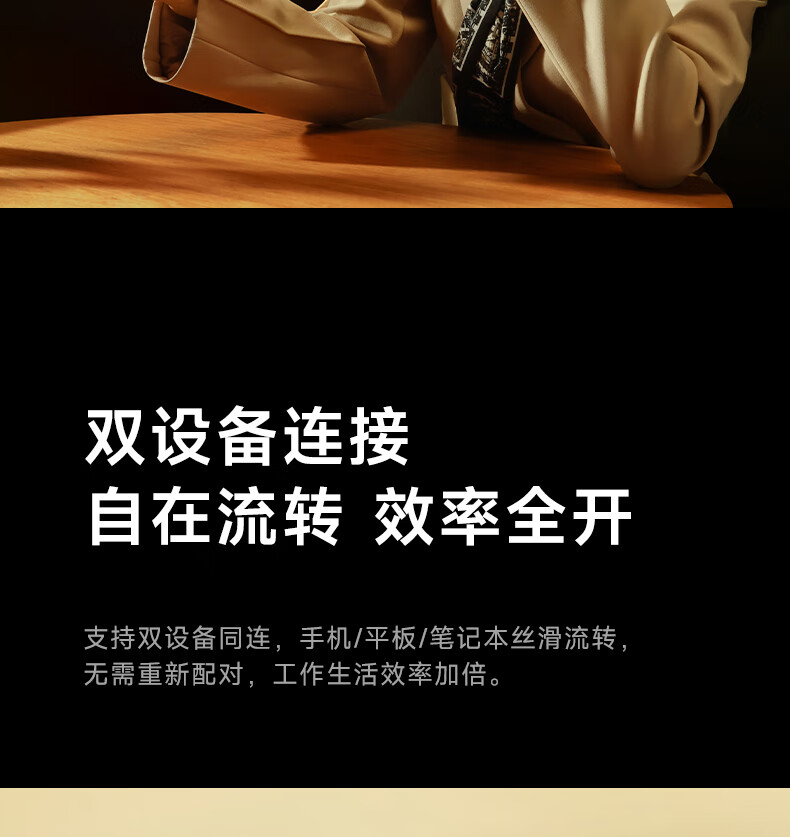 40H超长续航,好声音,听尽兴;AI智能通话降噪,听得清,说得明。;接入AI大模型,打造全天候陪伴的智慧体验