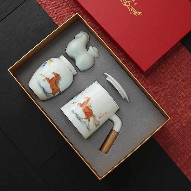 瓷伽什 前程似锦福马水杯茶叶罐套组CJS-KMH-009