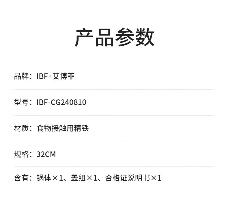 精致的工艺与流畅的线条,为家居增添一份时尚气息。;锅体采用食物接触用精铁,手柄采用天然木;锅具的良好导热性能和均匀受热,让你轻松烹饪出美味。
