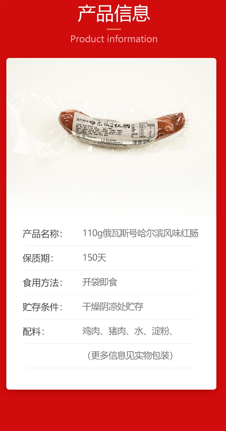 俄瓦斯号 哈尔滨风味红肠110g*5袋