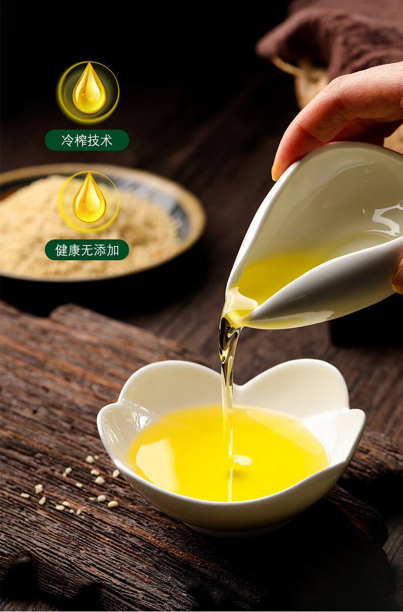 物理低温冷榨 冷烹两用;油体清澈 味道清香;头道初榨 0胆固醇