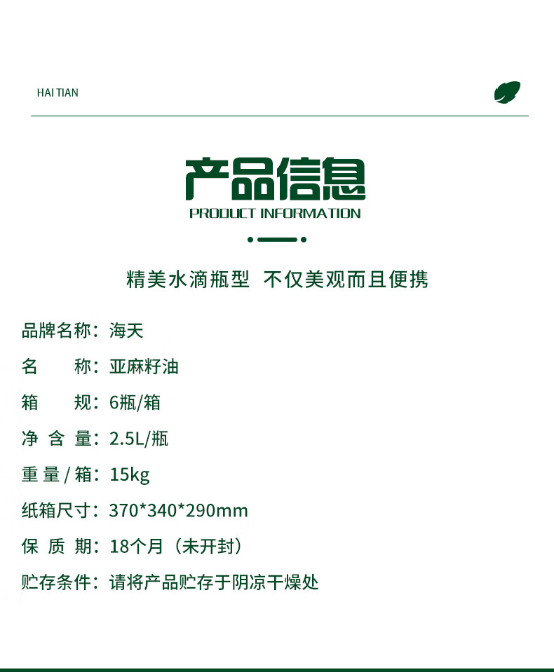 海天 亚麻籽油水滴瓶2.5L