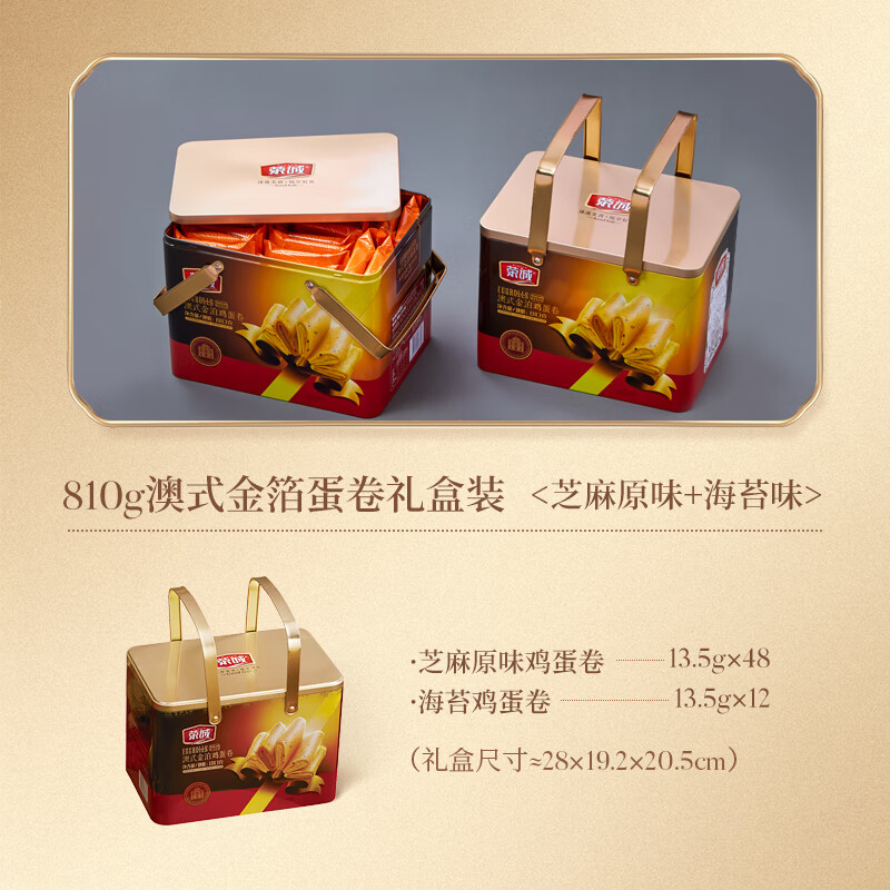 配置:13.5g芝麻原味鸡蛋卷x48 13.5g海苔鸡蛋卷x12