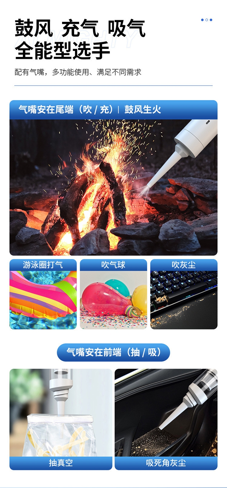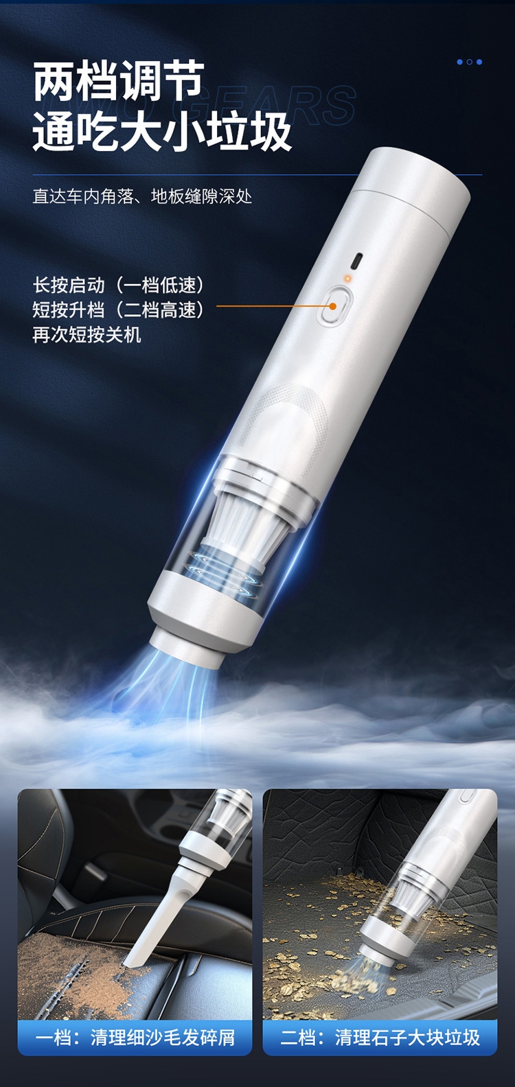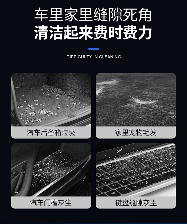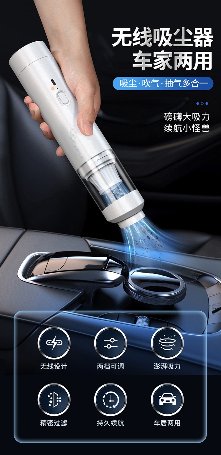 无线设计,方便快捷;多个刷头无惧灰尘;两档调节