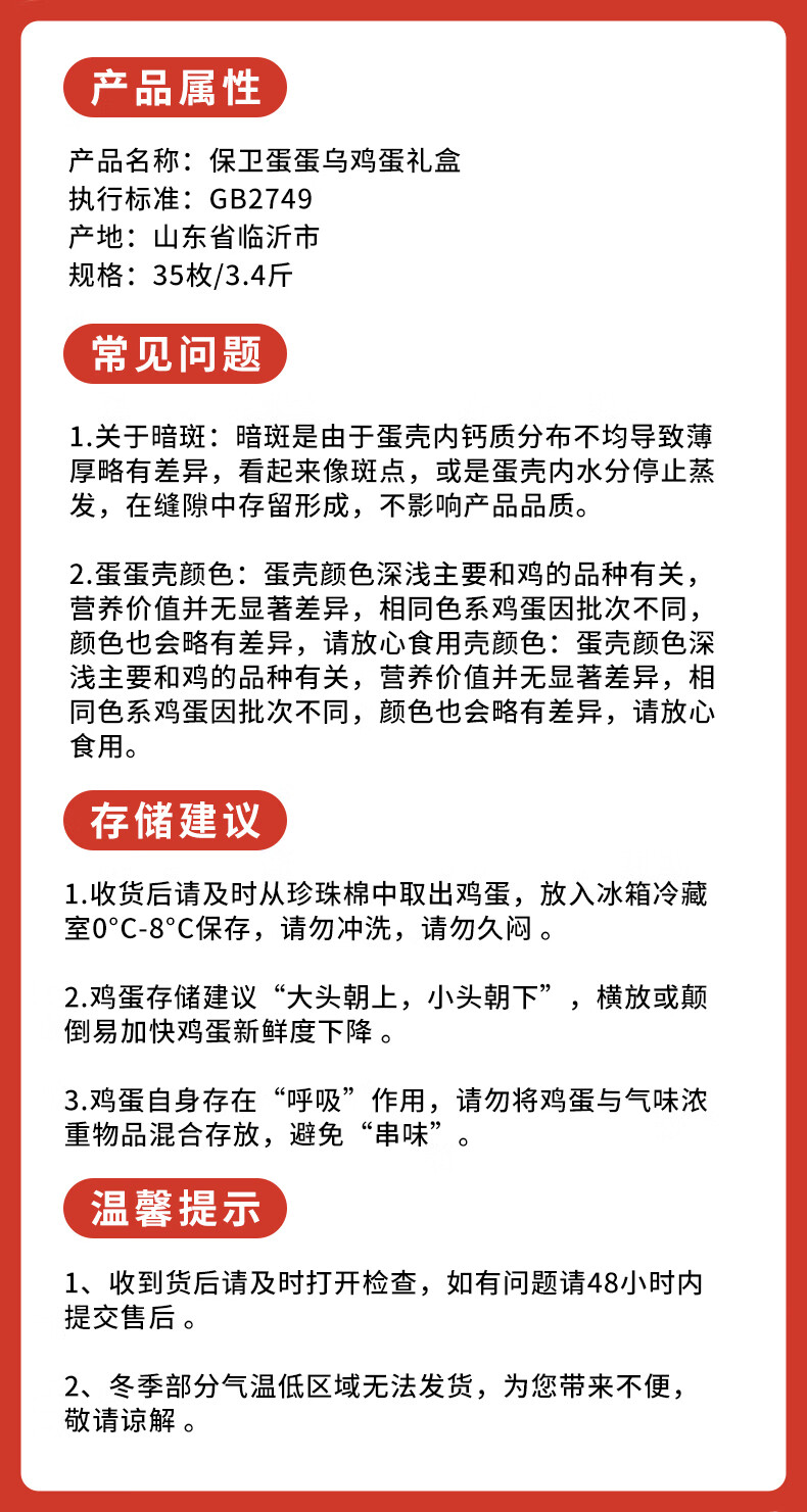 保卫蛋蛋 乌鸡蛋35枚礼盒装