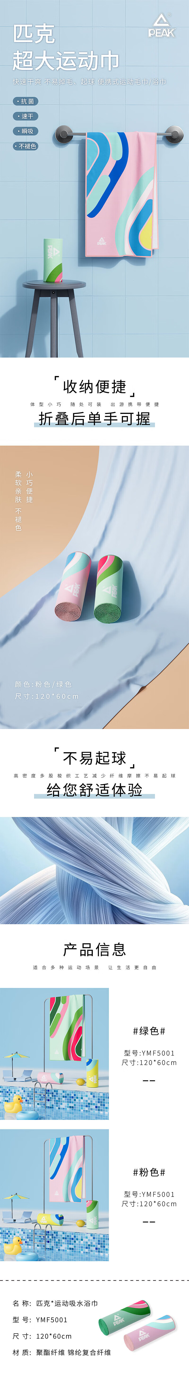 匹克 运动毛巾速干吸水浴巾YMF5001