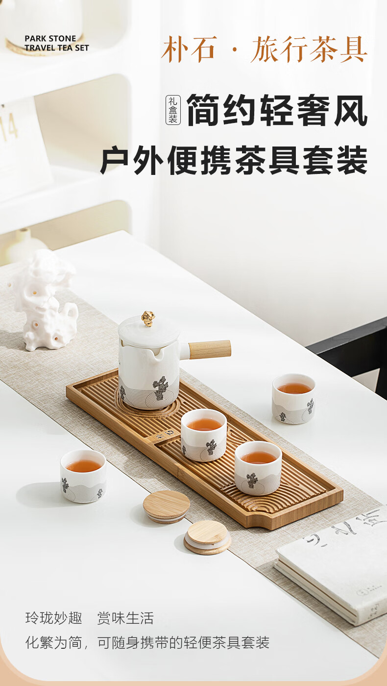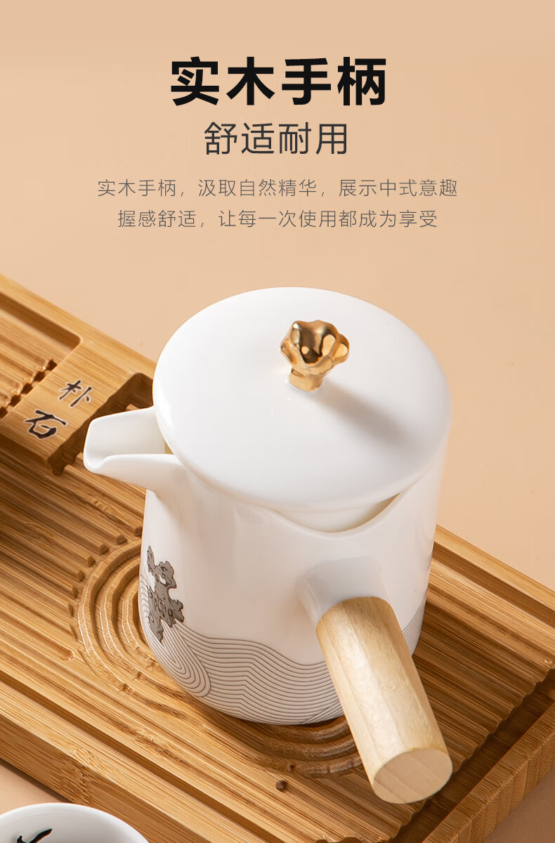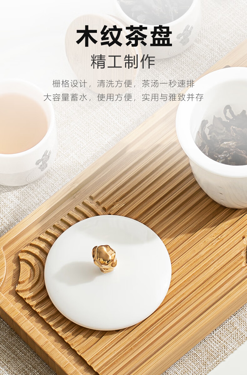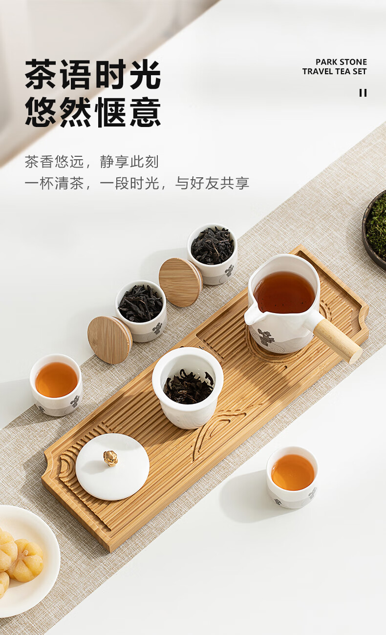 知勤堂 朴石系列之带竹盘陶瓷茶具套装