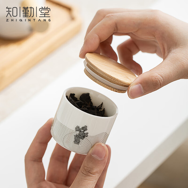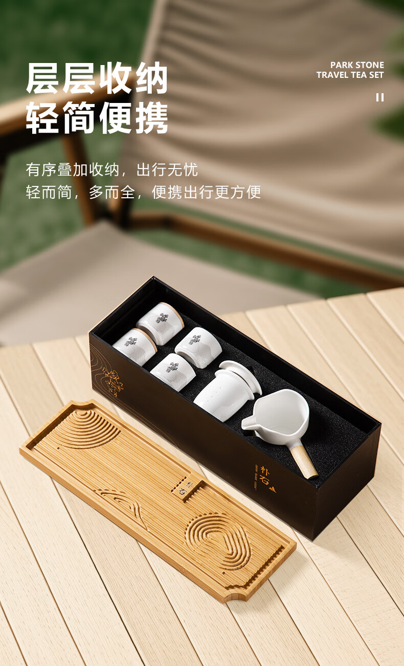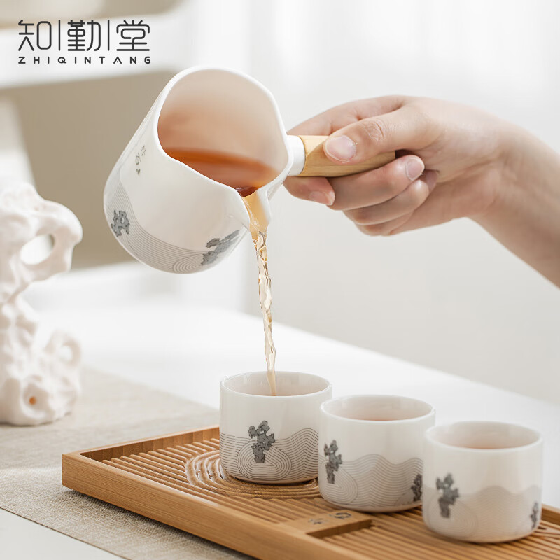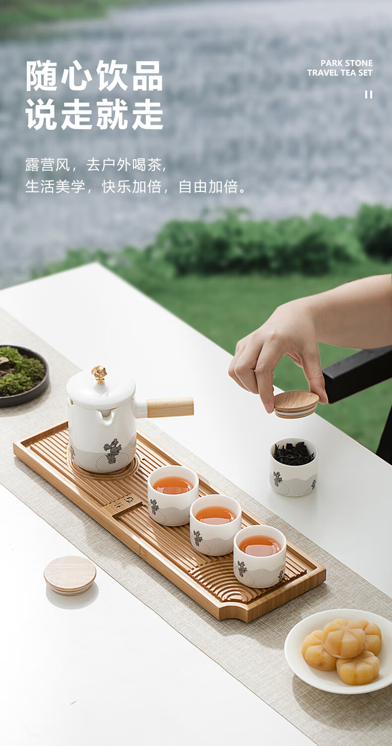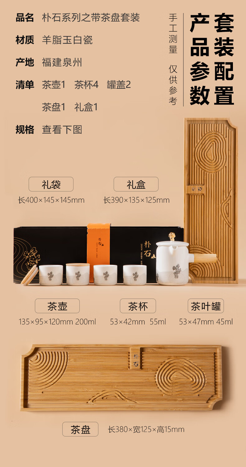 知勤堂 朴石系列之带竹盘陶瓷茶具套装