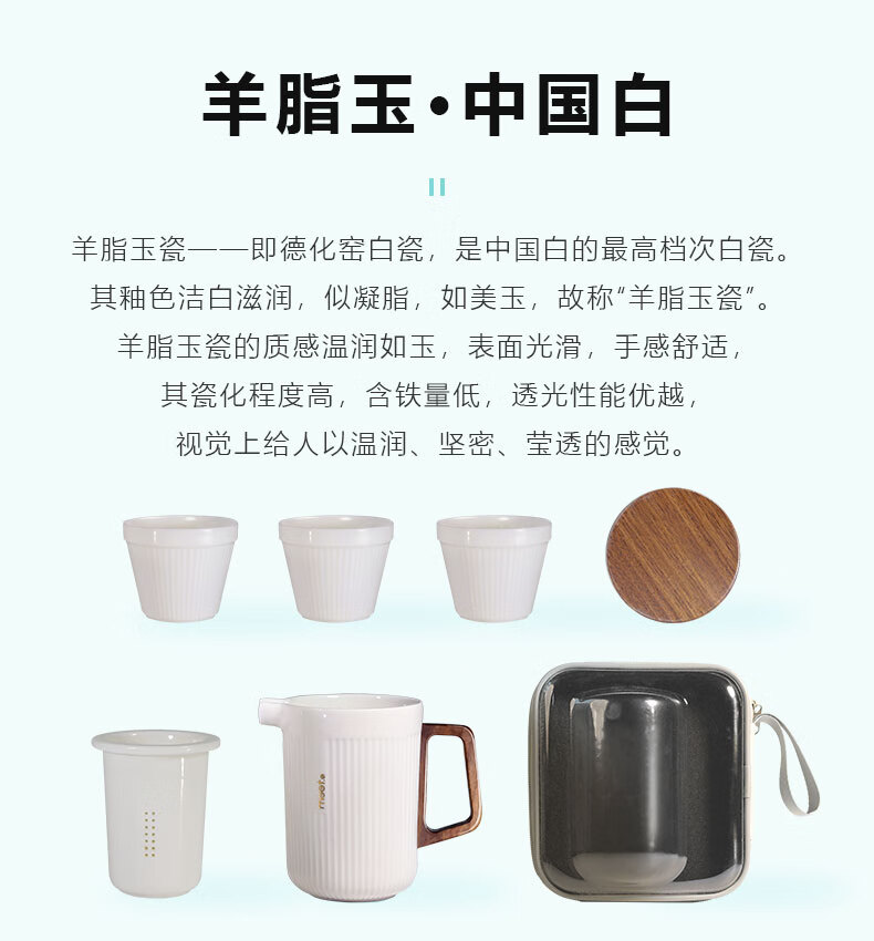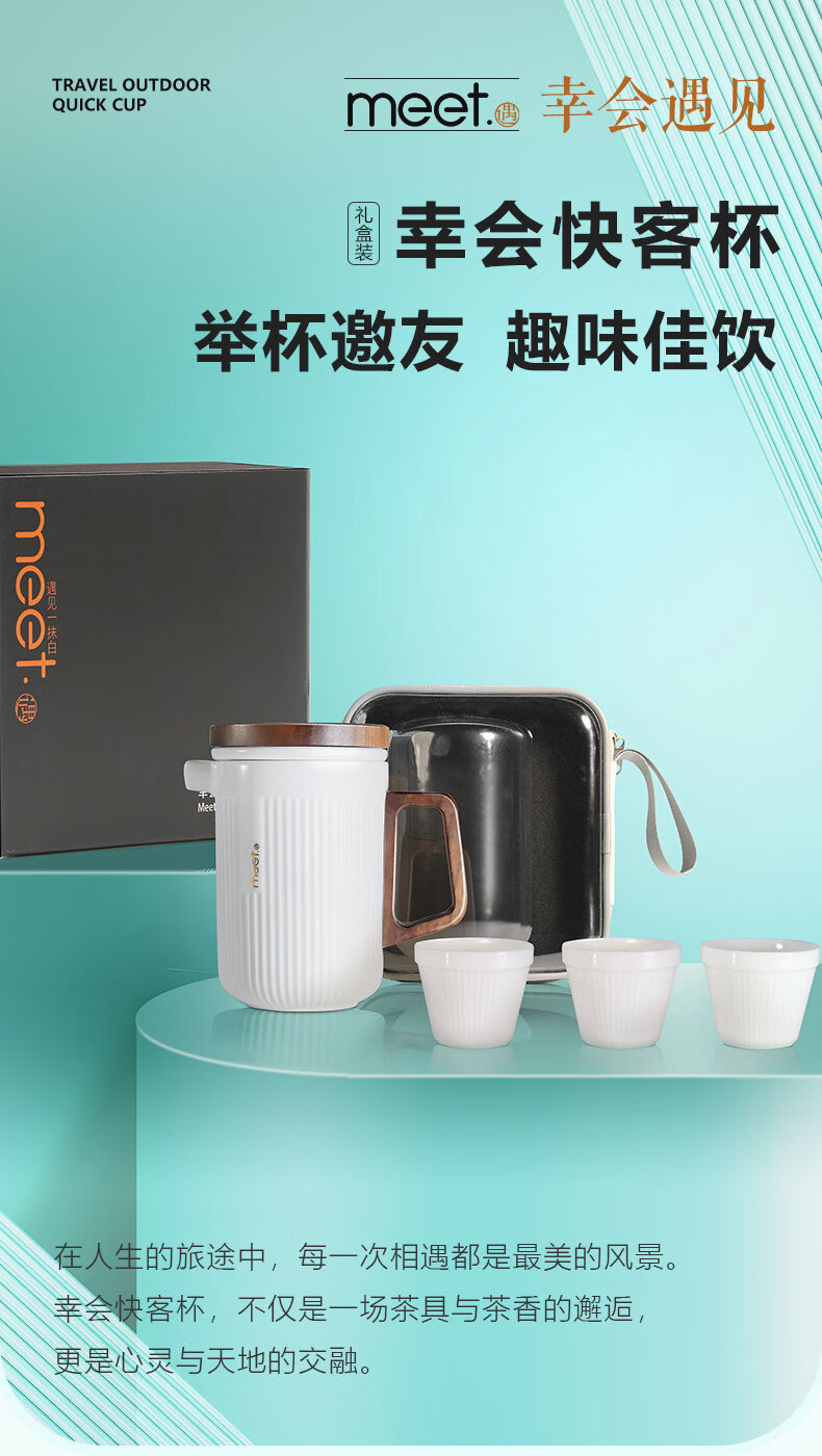 知勤堂 幸会旅行茶具白瓷一壶三杯快客杯
