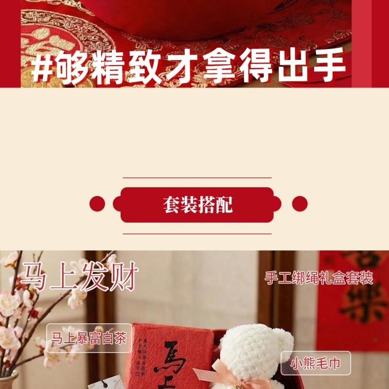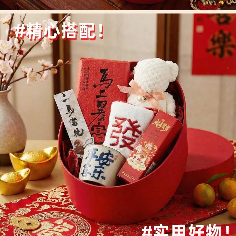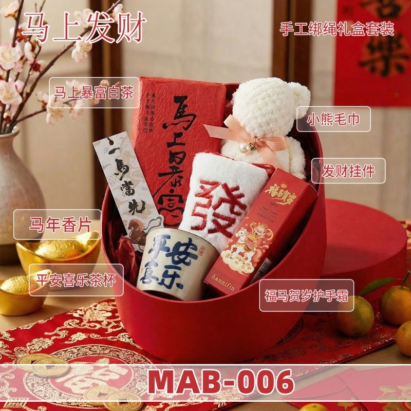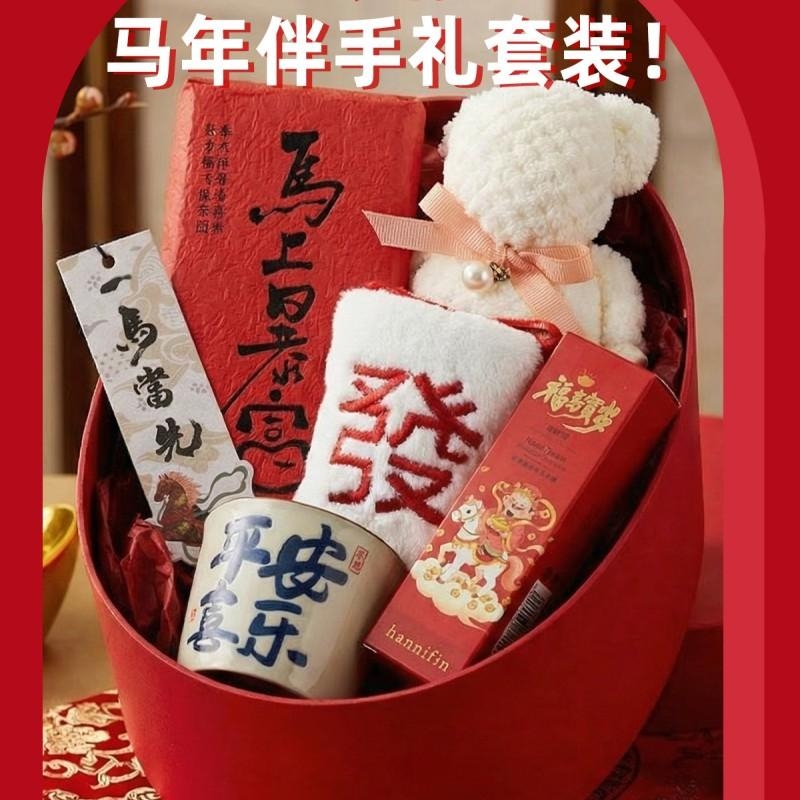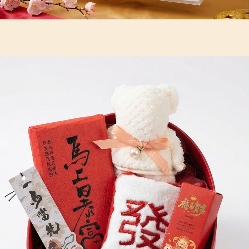 组合:发财挂件、平安喜乐茶杯、小毛巾熊30*30cm、马上暴富白茶100g、一马当先香薰石膏香挂、福马贺岁滋润护手霜35g