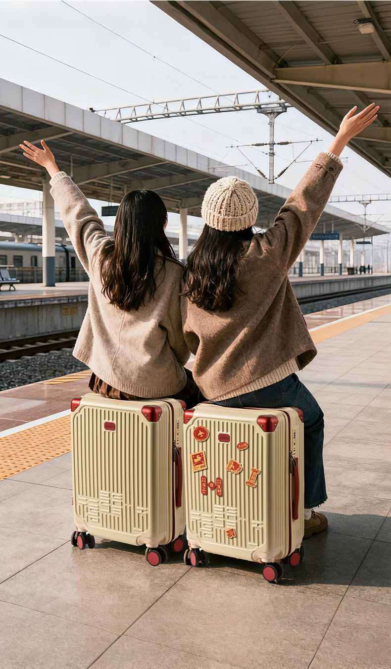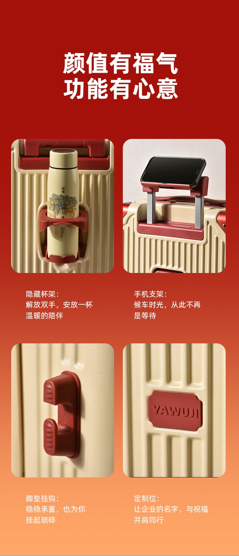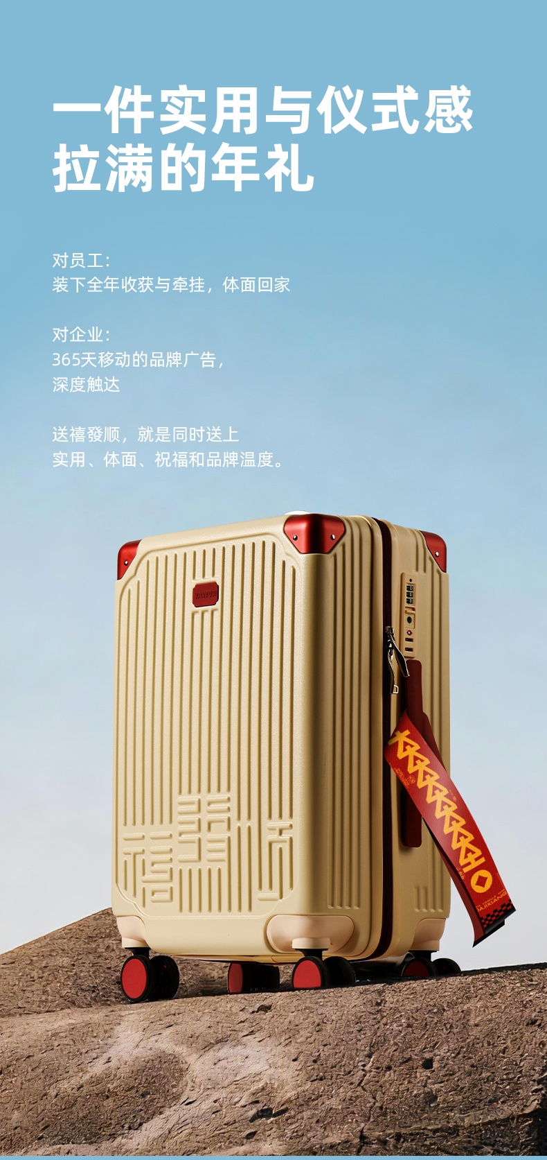配置:① 禧发顺行李箱 ② 行李飘带×1条 ③ 新年贴纸×1包