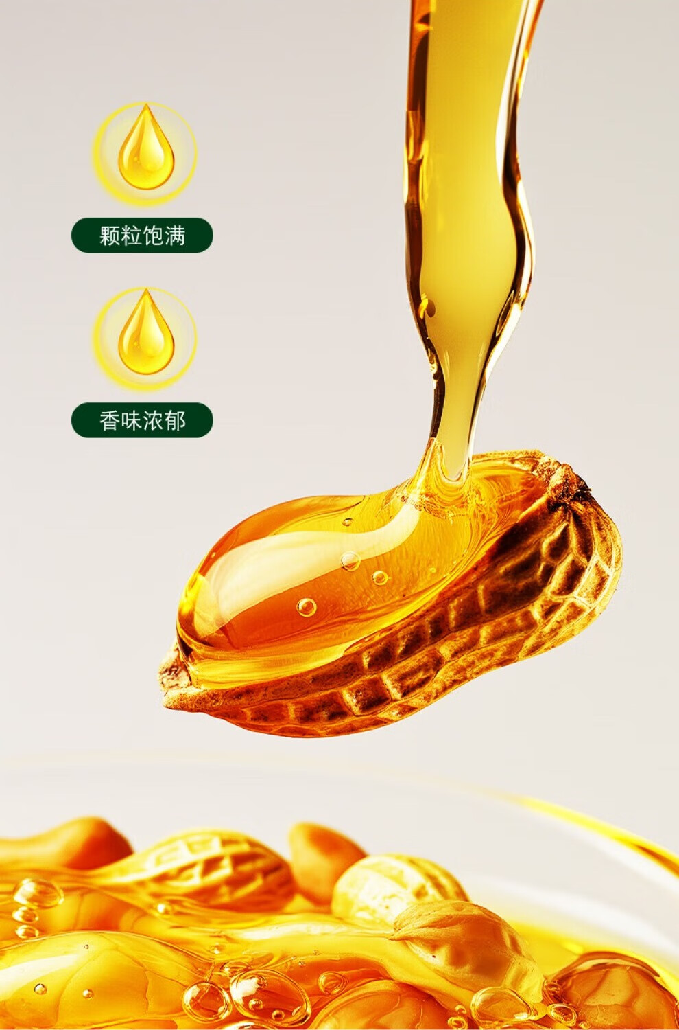 优质花生 颗粒饱满 粒粒精选 原香味浓;靠物理压力将油脂直接从原料中分离出来;只榨取第一道花生原汁 避免化学残留