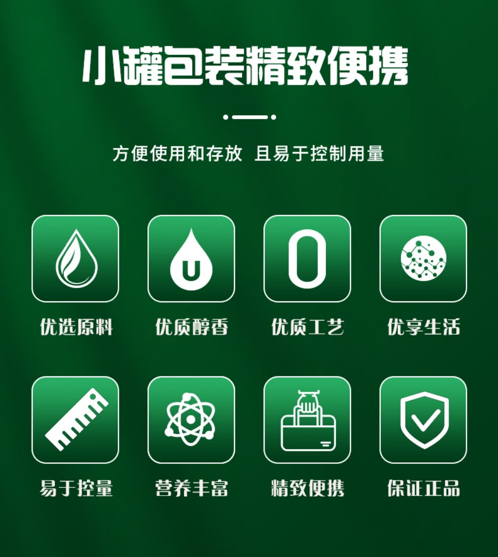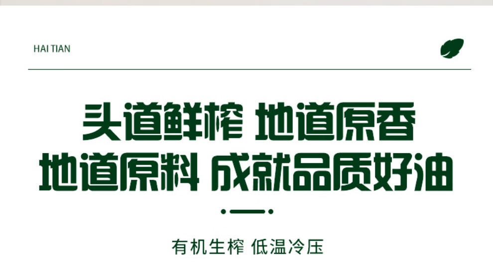 有机生榨 低温冷压 头道鲜榨 地道原香;含维生素E 角鲨烯 茶多酚等多种健康微量元素;215°高烟点 烹饪少油烟 生活更健康
