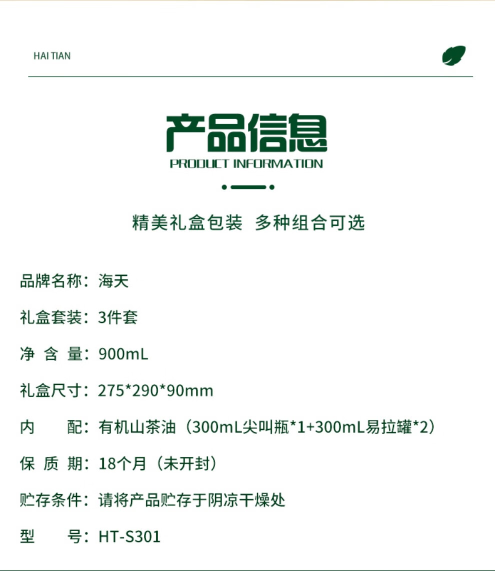 海天 有机山茶油3件套HT-S301