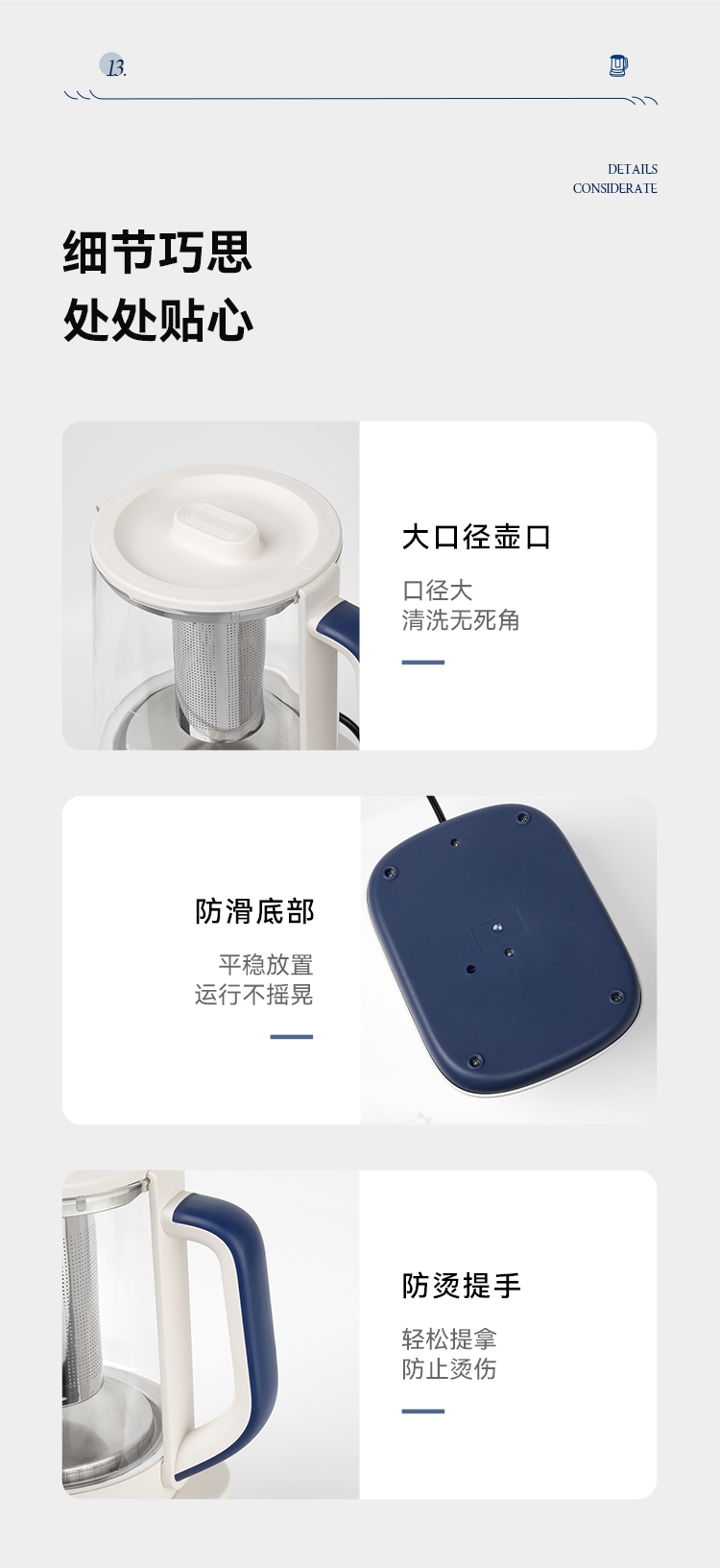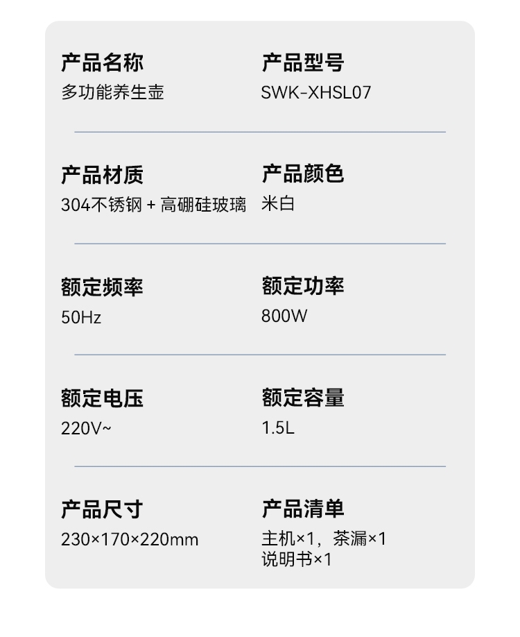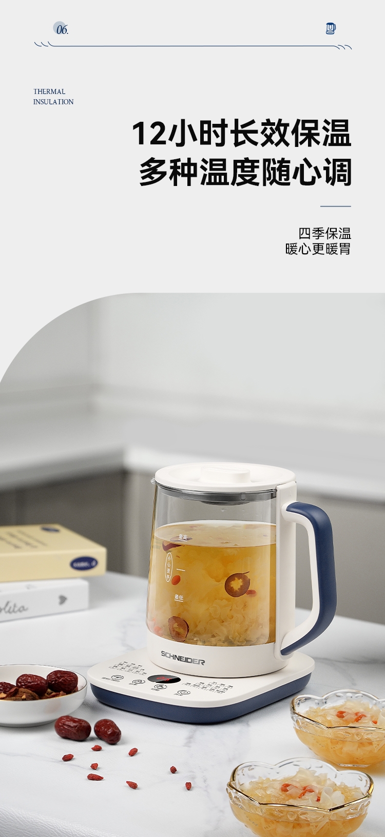 不仅是工具,更是关爱自己、注重健康的生活态度的体现;小巧便携,可煮水果茶、养生茶,替代高糖饮料;防溢锅技术,炖煮粘稠食材不易溢出
