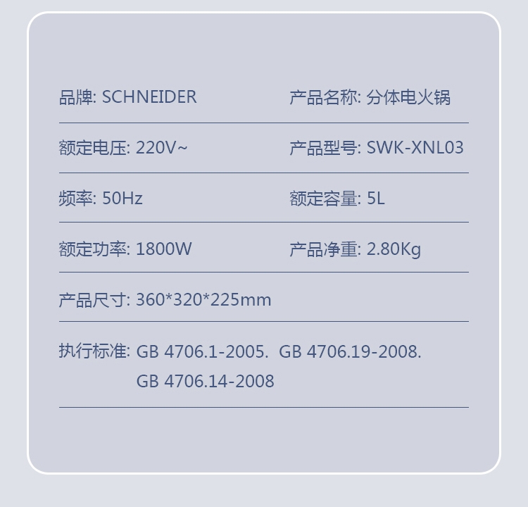 施耐德 分体电火锅5LSWK-XNL03