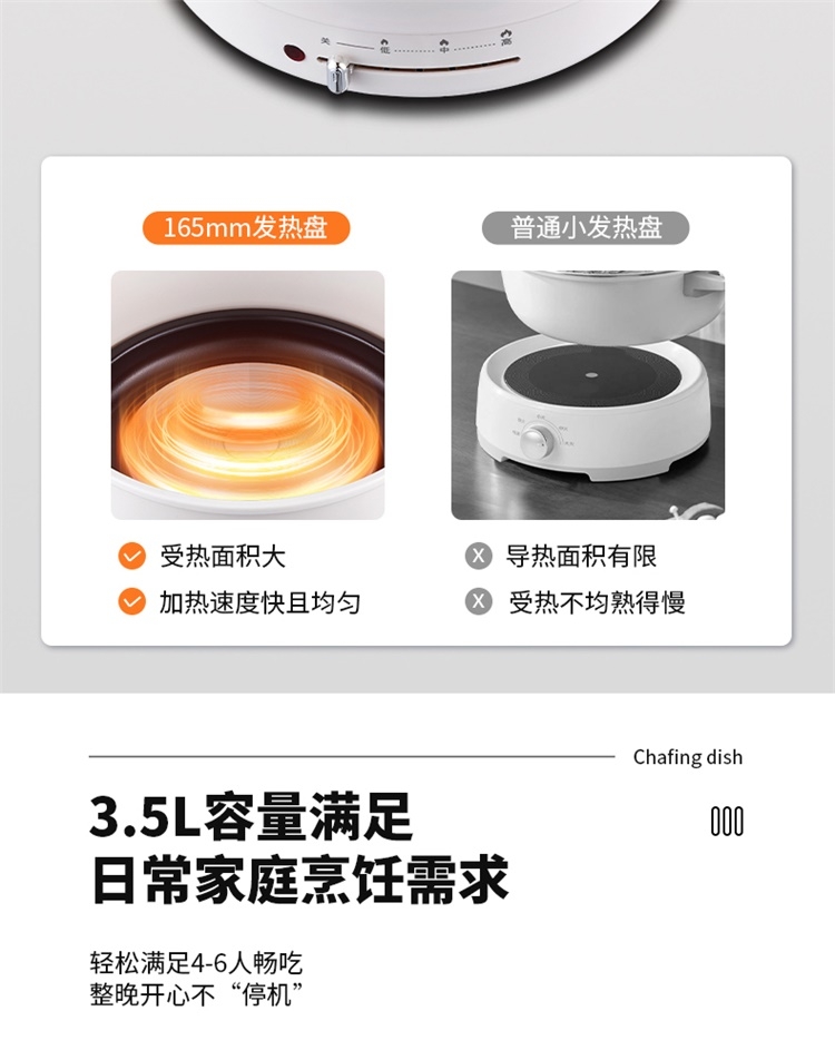 涮炒焖煮样样行;油污一擦即净,减少清洁负担;相比外出就餐,在家吃火锅更经济卫生,自由搭配食材