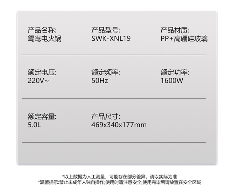 施耐德 鸳鸯电火锅5LSWK-XNL19