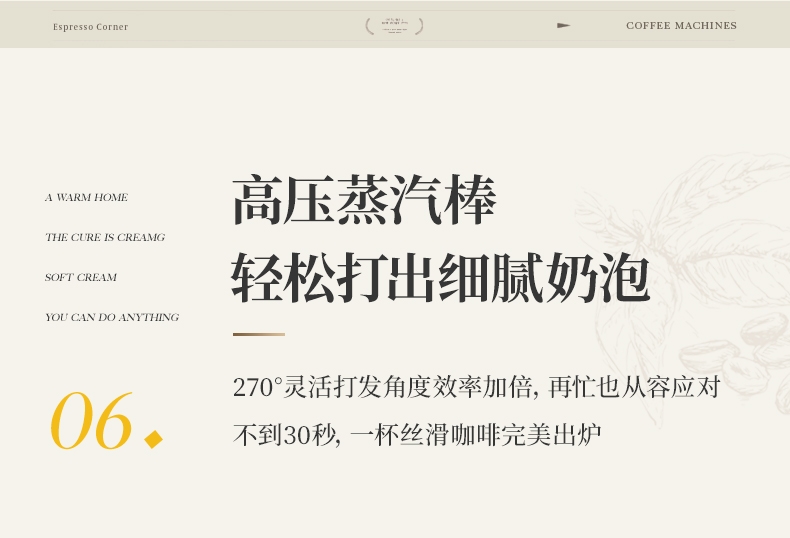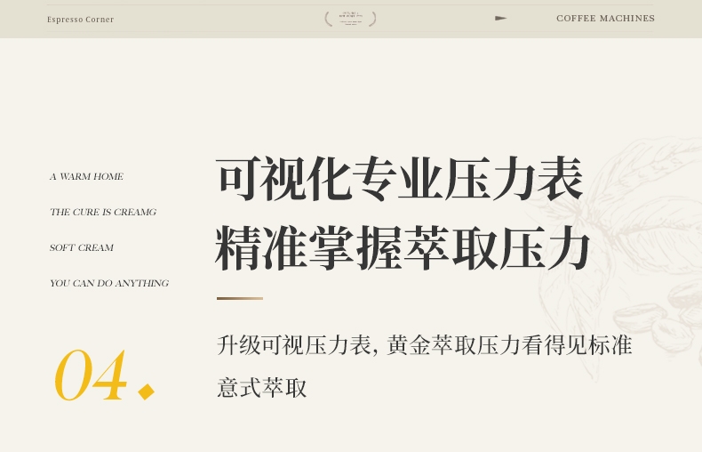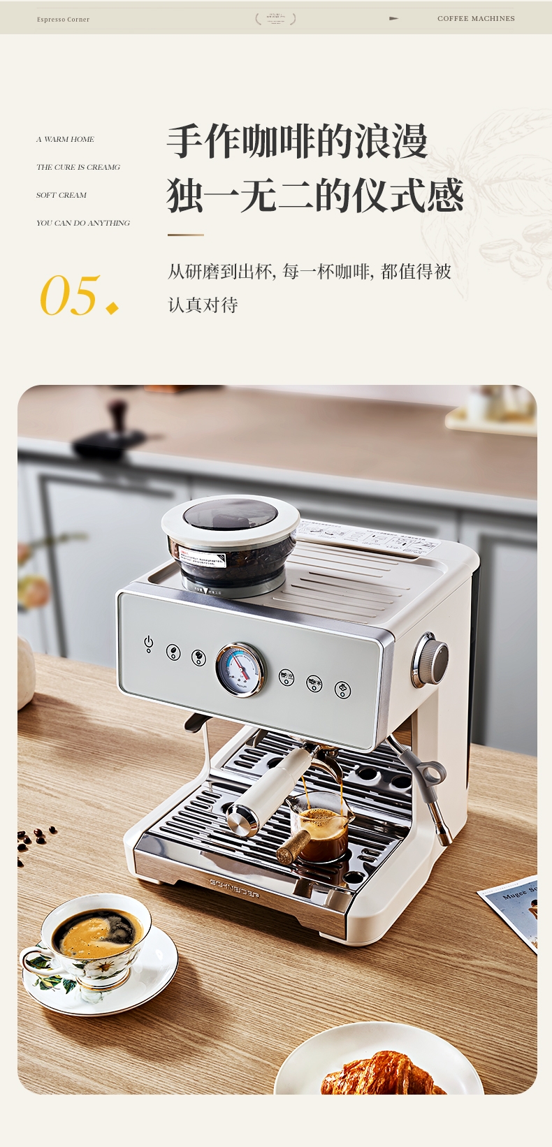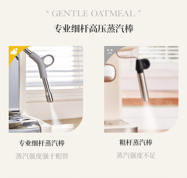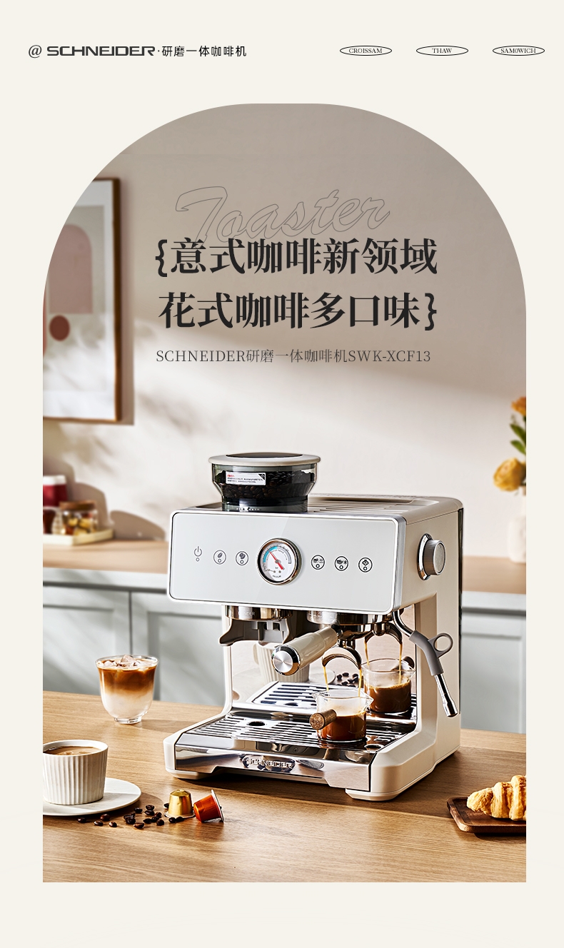 可同时处理多杯饮品,适合高流量场景。;旋转泵提供更稳定压力,噪音低,寿命长,适合高品质需;缺水、缺豆、清洁提醒等,降低运营风险。