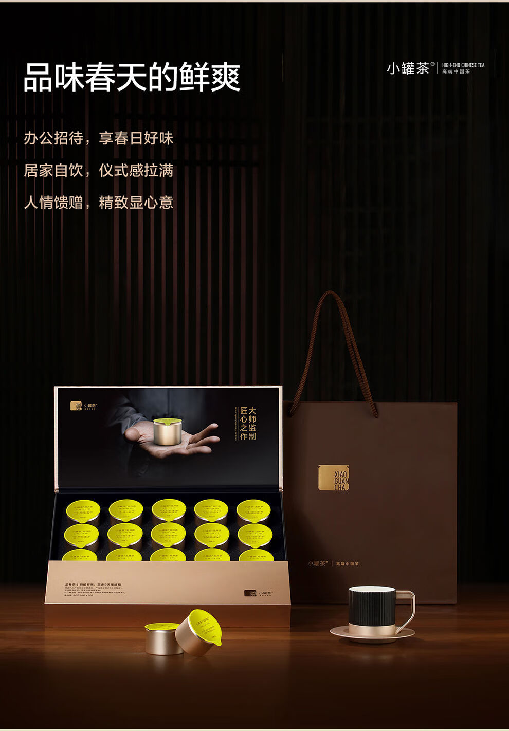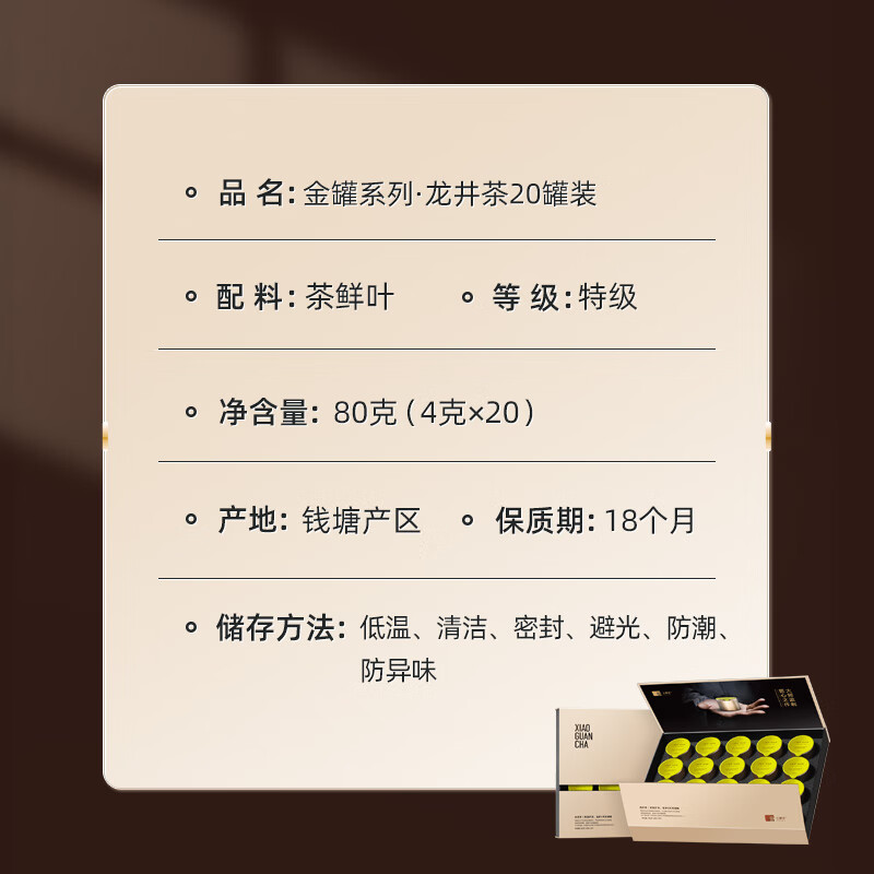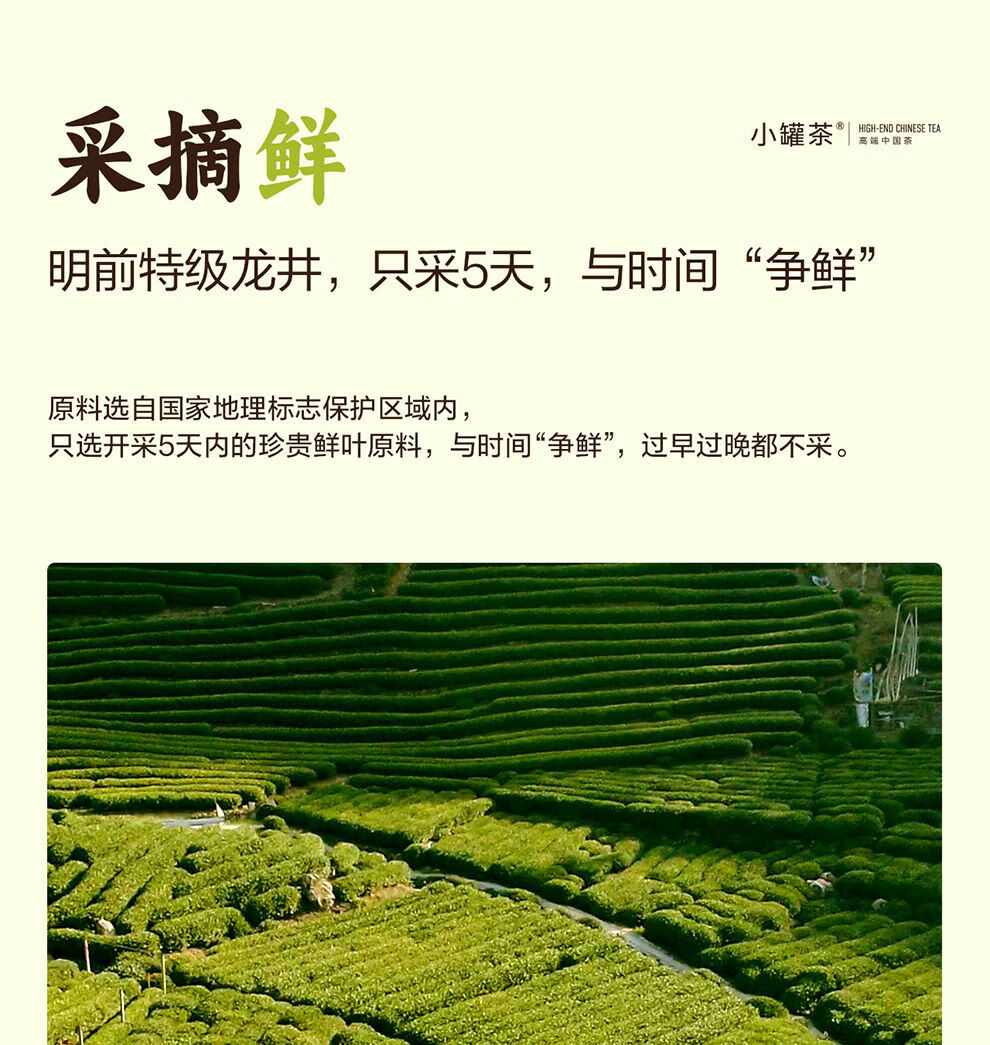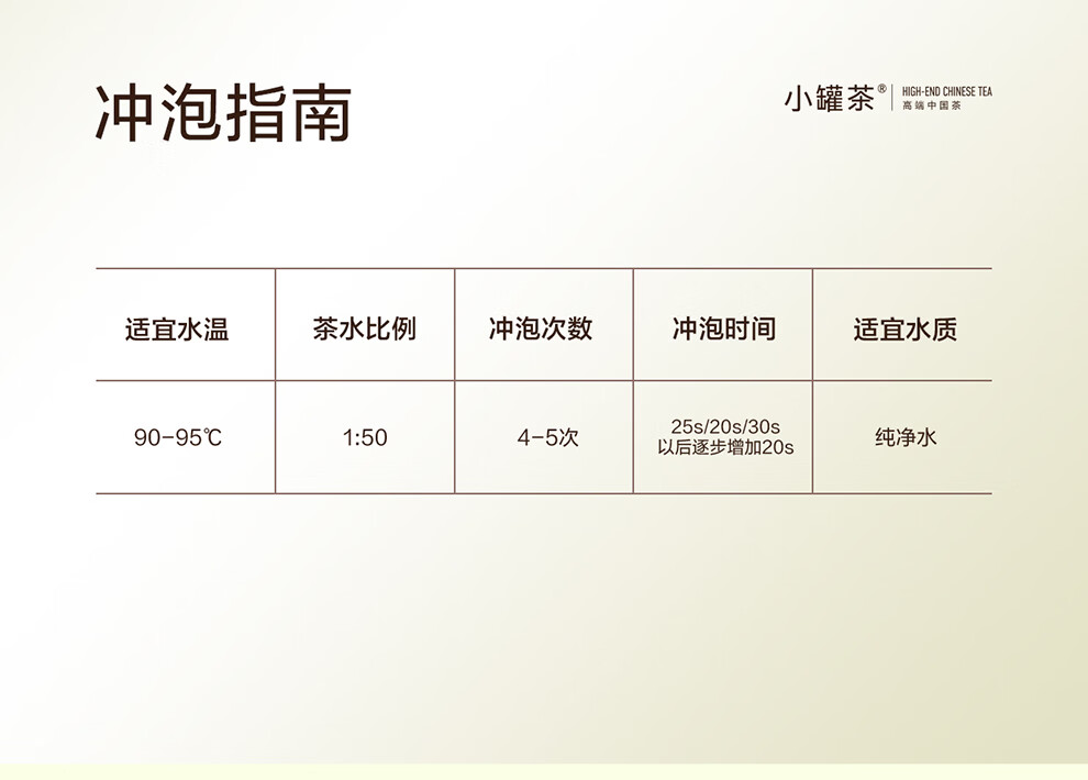 干茶扁平光滑、挺直尖削嫩黄绿鲜润;清香伴嫩栗香、持久;汤色清澈、嫩绿明亮