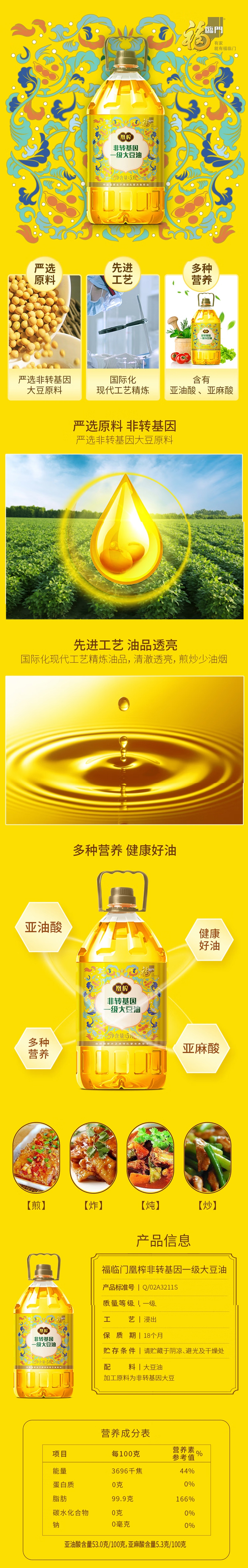 福临门 凰榨非转基因大豆油5L