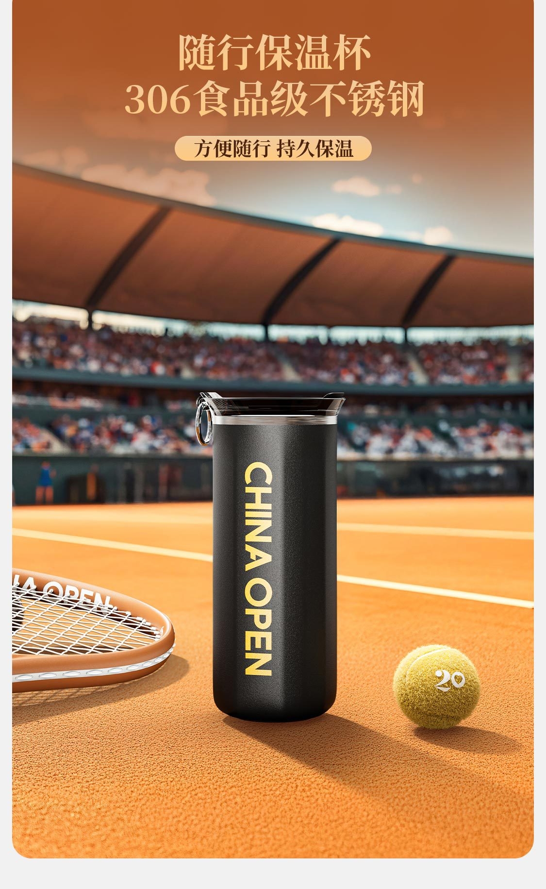 中网限定网球典藏·二十周年纪念版 ;高定礼盒,奢华而独特致敬荣耀之路;随行保温杯,306食品级不锈钢,方便随行,持久保温