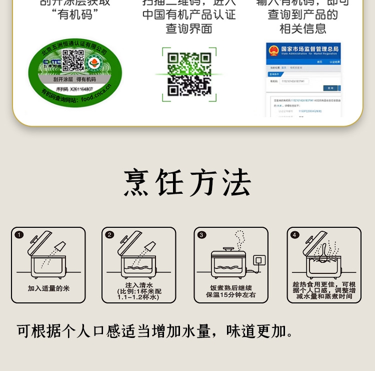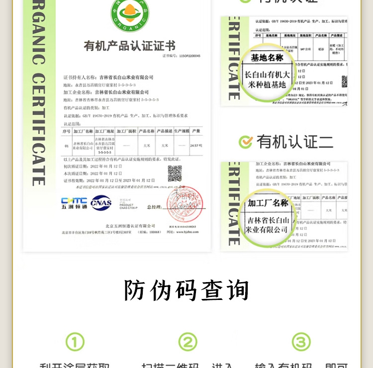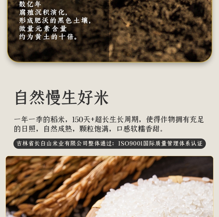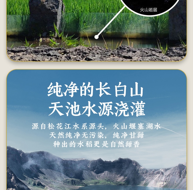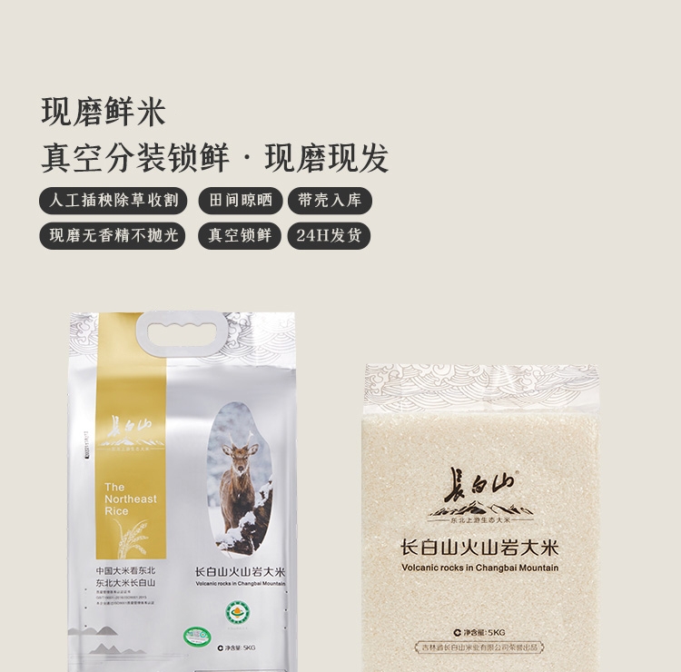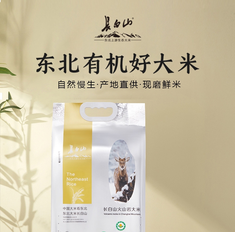 长白山大米山泉水灌溉,寒地生长,绿色加工,不抛光;长白山大米安全、营养、好吃;其包含矿物质/微量元素;有机食品,经过有机认证机构认证食品