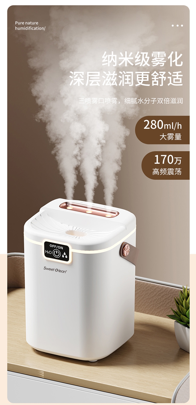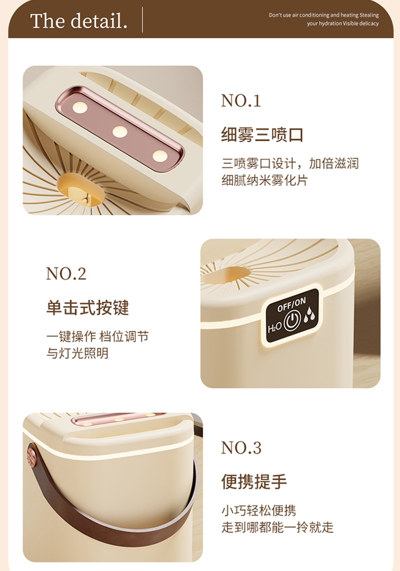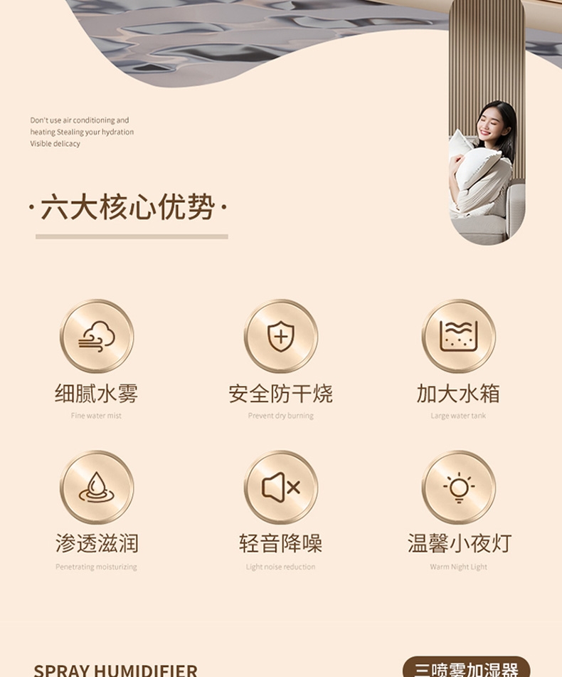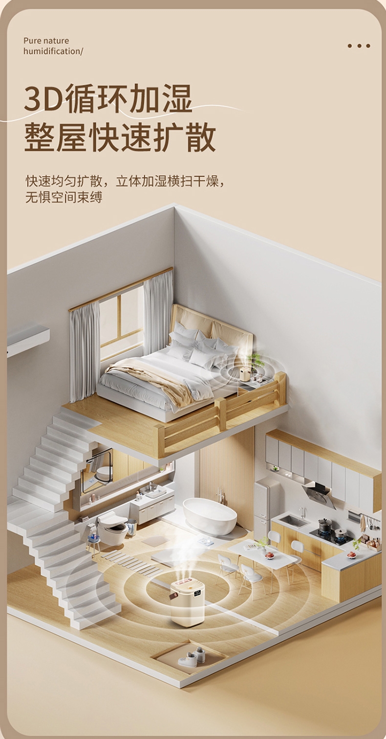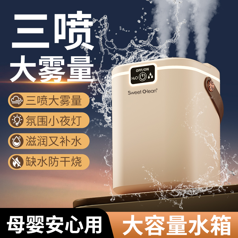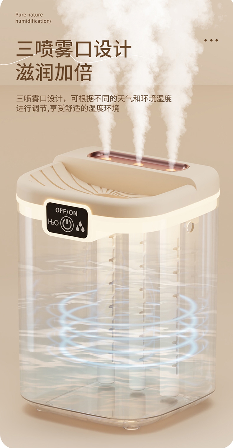 2L大容量量,三喷加湿器;细腻补水、轻音加湿、纳米喷雾;空调伴侣,强效雾化、加大容量 母婴适用