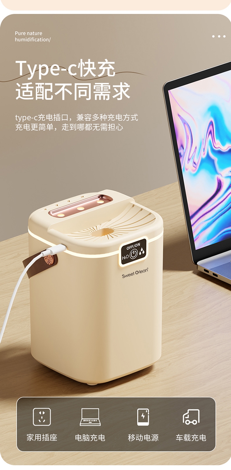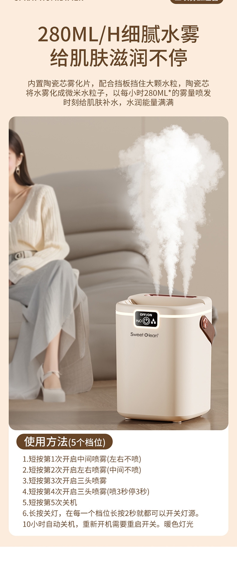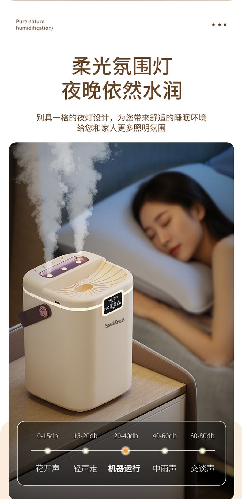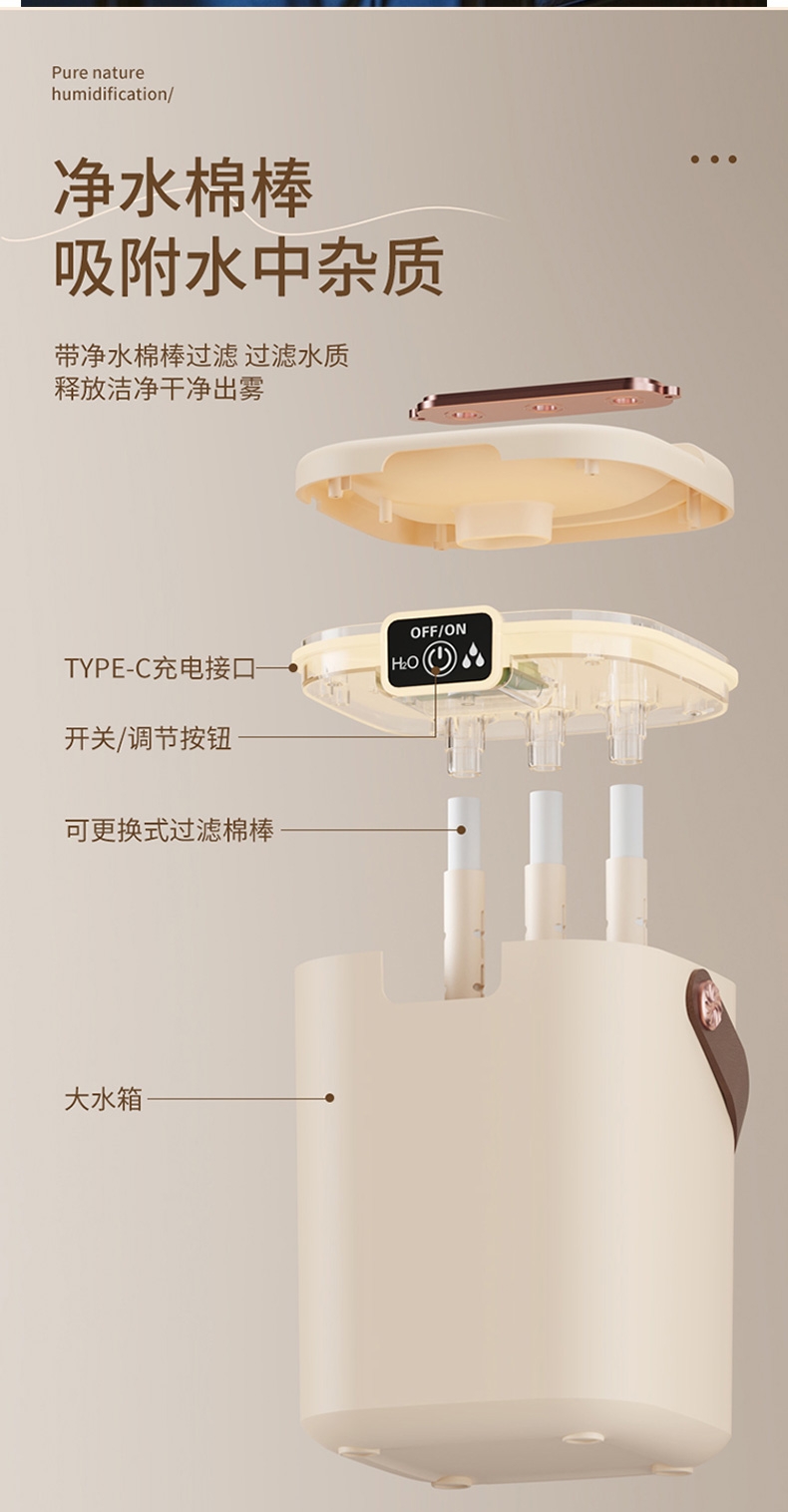 2L大容量量,三喷加湿器;细腻补水、轻音加湿、纳米喷雾;空调伴侣,强效雾化、加大容量 母婴适用