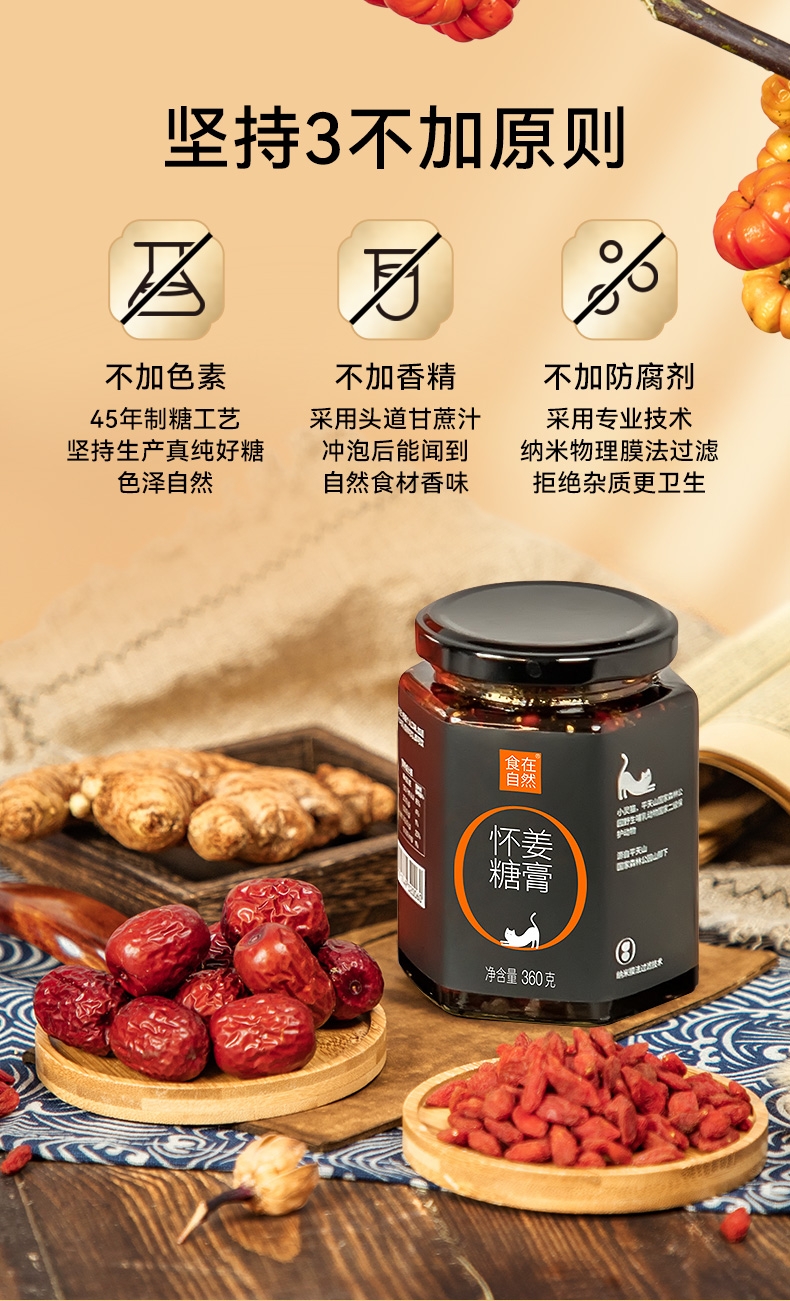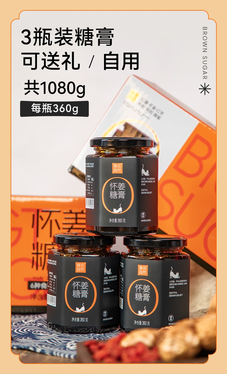 食在自然 怀姜红糖膏礼盒360g*3瓶