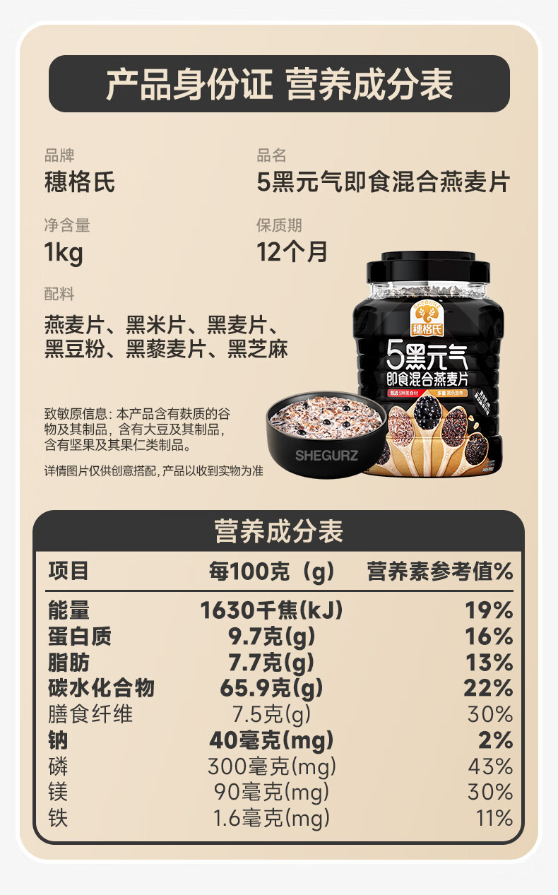 5黑混合燕麦片;冲饮谷物;健身代餐